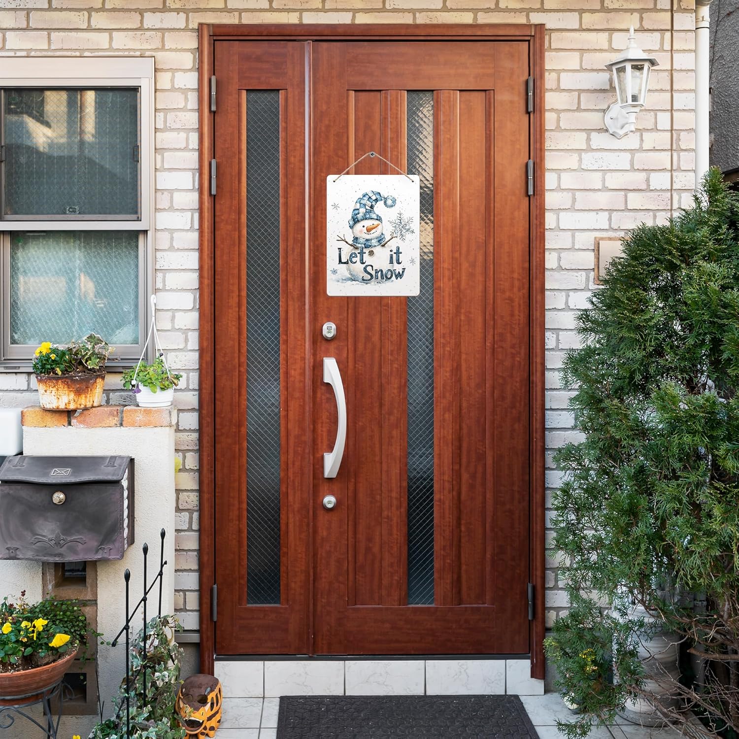 Winter Snowman Hanging Wooden Signs 12x6, Let It Snow Signs, Winter Wall Decor, Winter Door Decor, Blue Snowman Winter Snowflakes Home Room Office Hanging Wall Decor