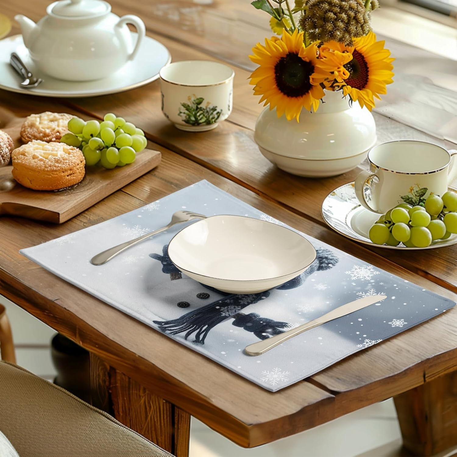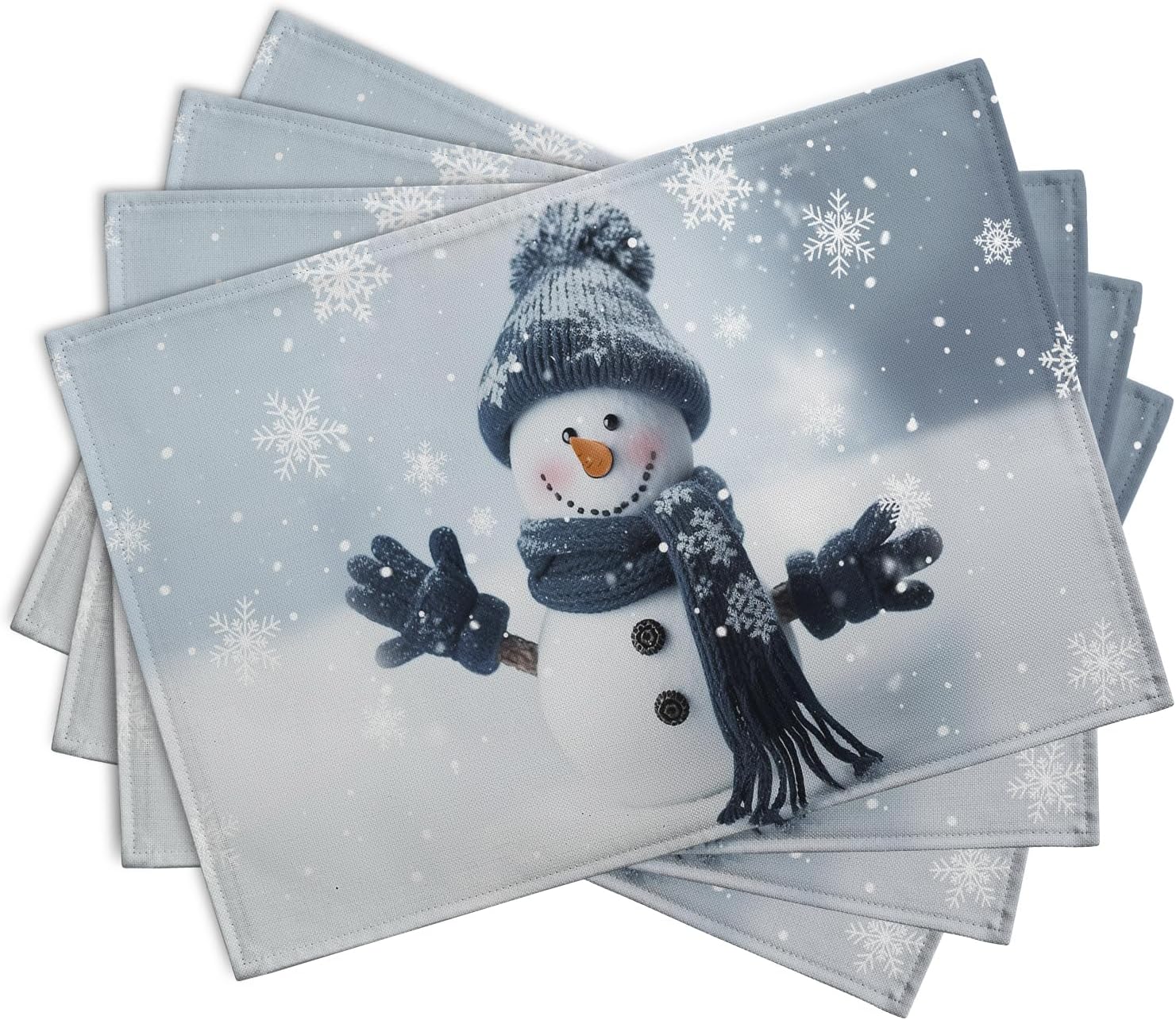 - PERFECTLY SIZE: The snowman dining table mats set of 4, Each blue snowman place mat is 18脳12 inch (45cmx30cm) that can exactly fits your needs to use in all kinds of situations
