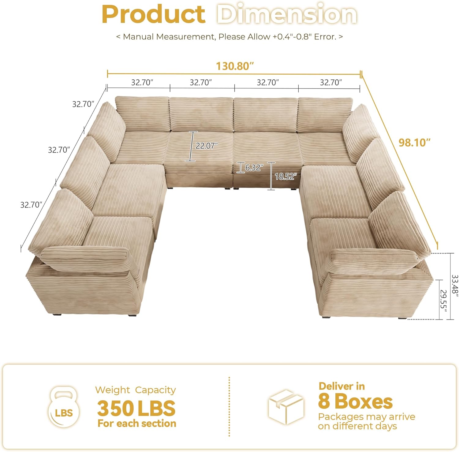 HOOOWOOO Modular Sectional Sofa,8 Pieces Sectional Couches for Living Room,131X98 L Shaped Cloud Couch with Ottoman Chaise Set(Beige Velvet Corduroy)