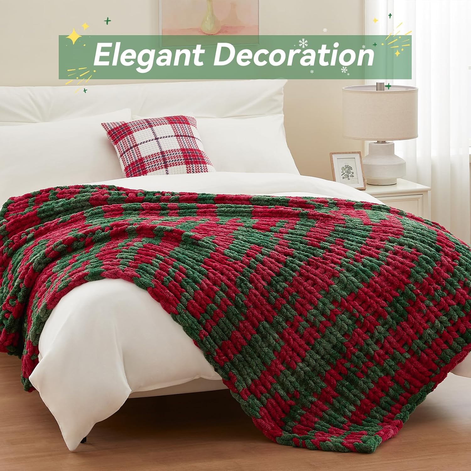 Chunky Knit Throw Blanket, 30''*40'' Knitted Throw Chenille Yarn for Bed Couch, Handmade Stripe Crochet Big Thick Blanket, Machine Washable Cute Comfy Blanket for Home Decor