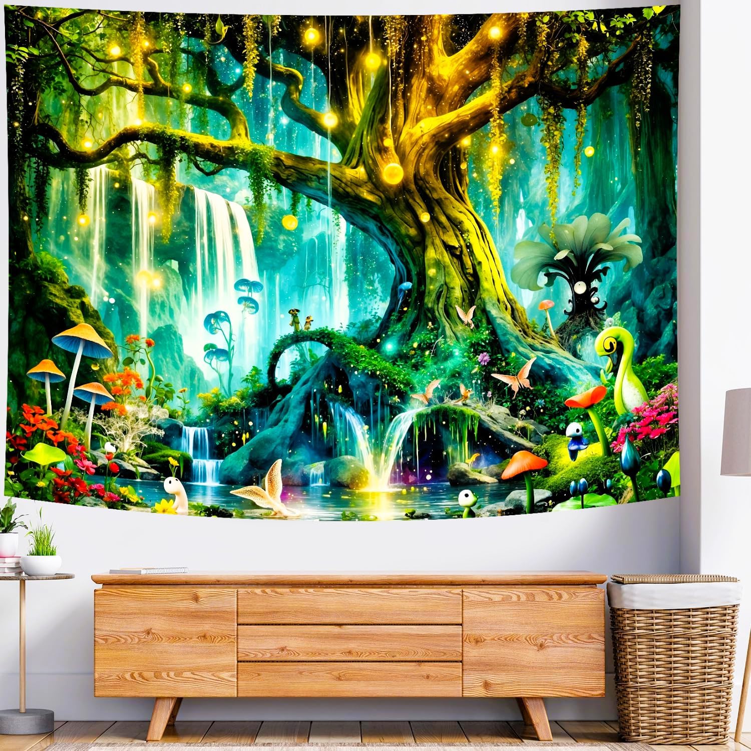 Delur Magical Forest Tapestry Fantasy Tree of Life Enchanted Fairy Tale Forest Tapestry Mystical Psychedelic Nature Landscape Wall Hanging Headboard for Bedroom Living Room Home Decor (51.2" x 59.1")