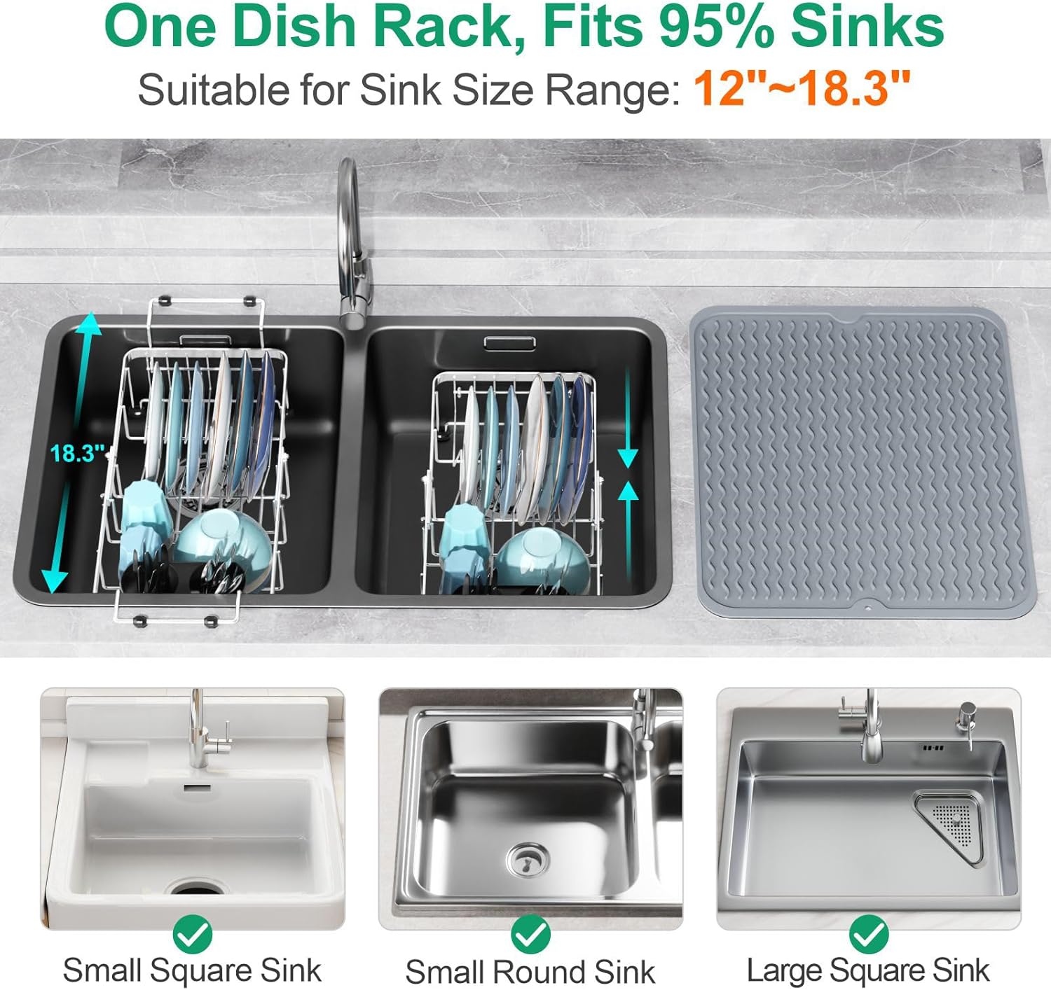 - Anti-slip and Anti-scratch and Steady: Unlike others with parallel sink structures, our sink drying rack features a sunk design that provides superior stability, reducing the risk of slipping. The sink drying rack features anti-slip beads on both handles to prevent it from sliding while hanging over the sink. The bottom 4 feet are equipped with non-slip rubber sleeves to protect your counter and sink from scratches.