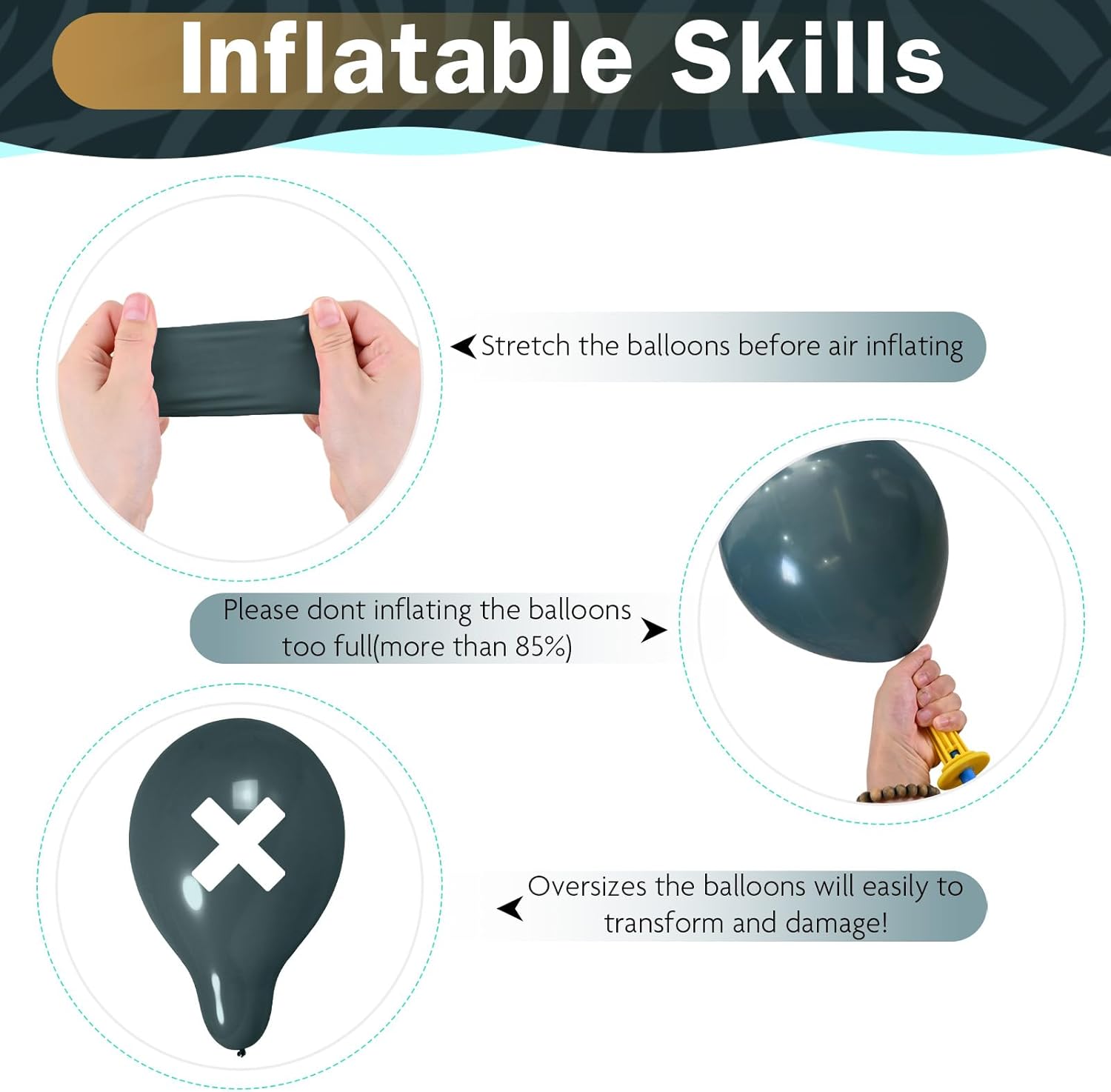 - Warm Tips: Please avoid exposing baby blue gold balloon kit to direct sunlight before use to avoid affecting the quality and life of the globos azules; During the inflation process: Please inflate the globos into a round shape to prevent the light blue balloons from bursting; Choking Hazar: Adult supervision is required; Keep uninflated assorted balloons away from children