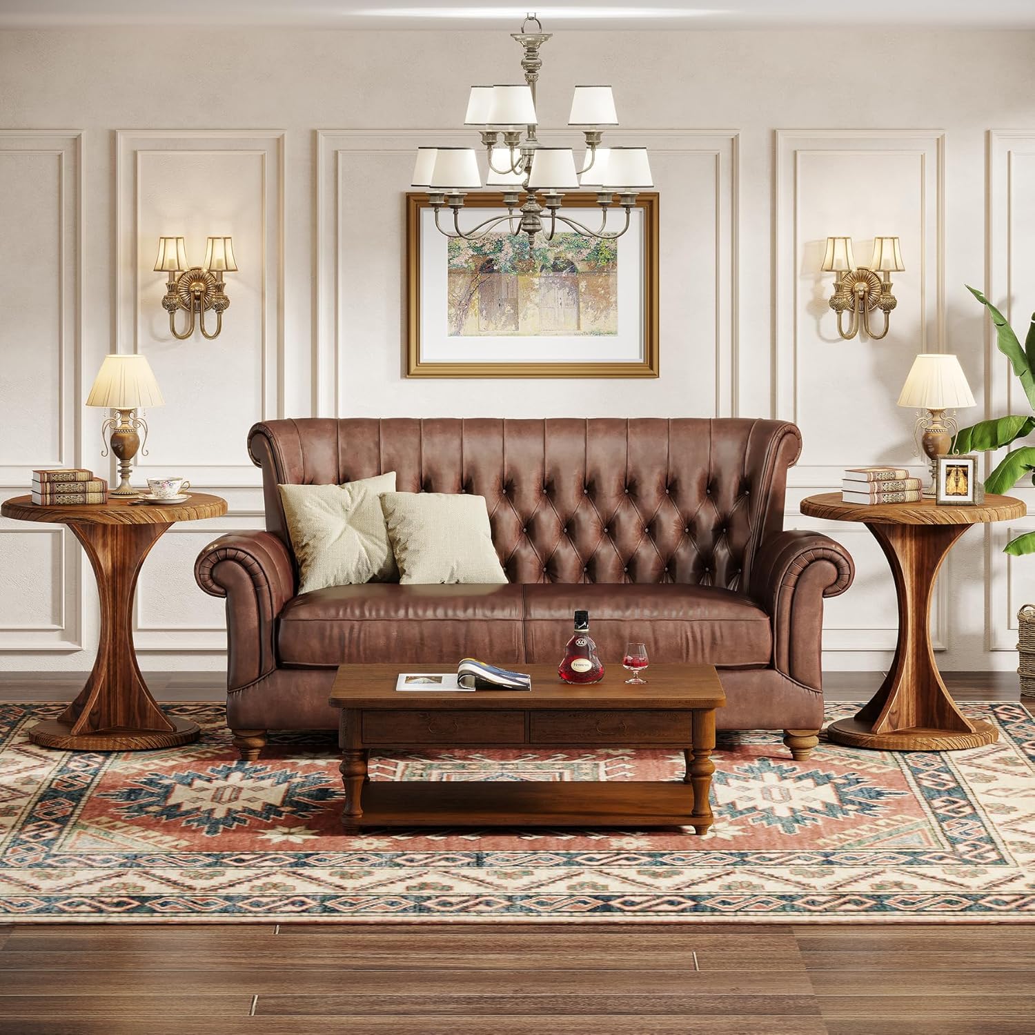 Tribesigns Round End Table for Living Room, Wood Side Table Set of 2, Mid-Century Bedside Nightstand for Bedroom, Accent Table, Easy Assembly, Vintage Brown