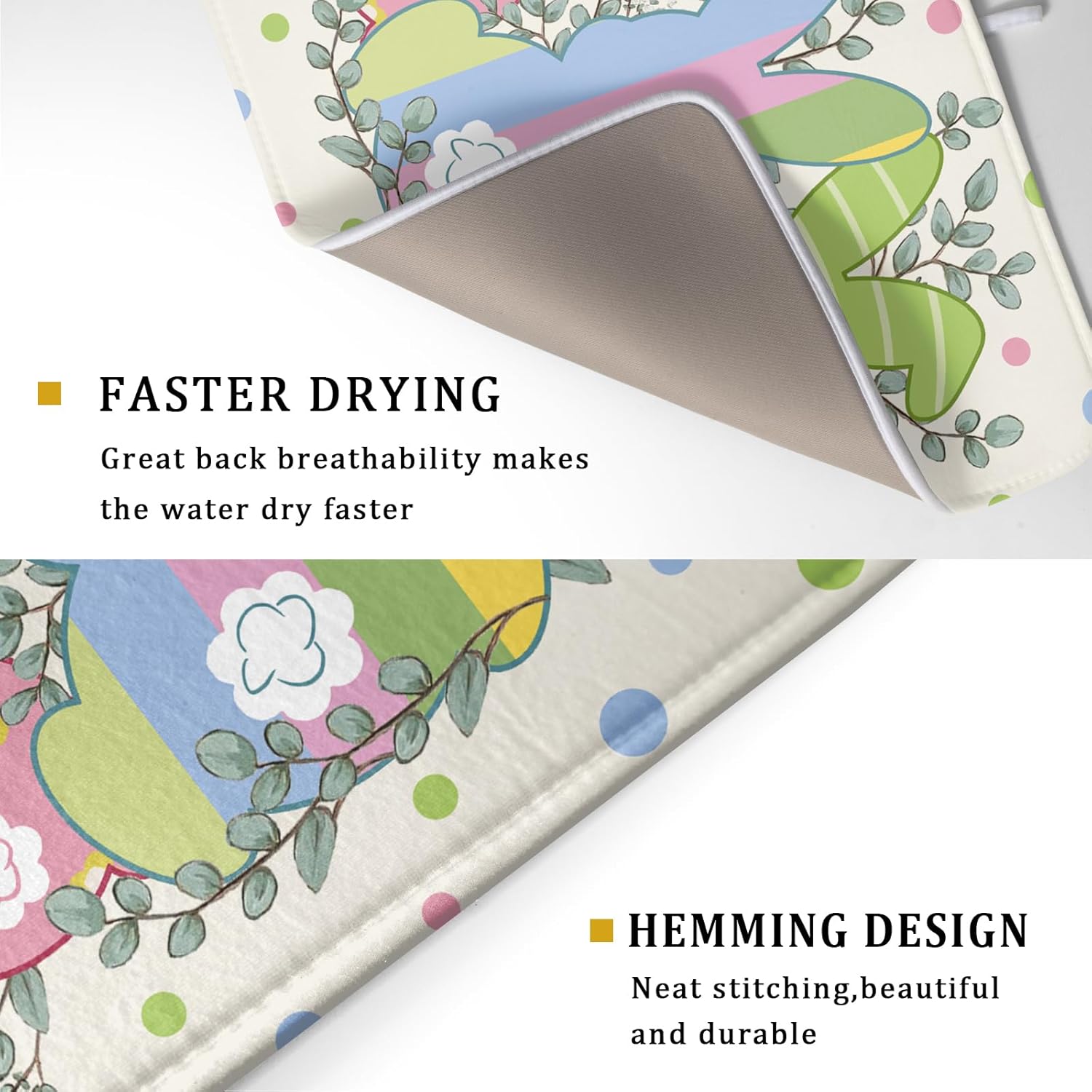 - 【Perfect Size】This Easter dish drying mat measures 18 x 24 Inch. Fits most kitchen countertops,while providing a smart,sharp look.