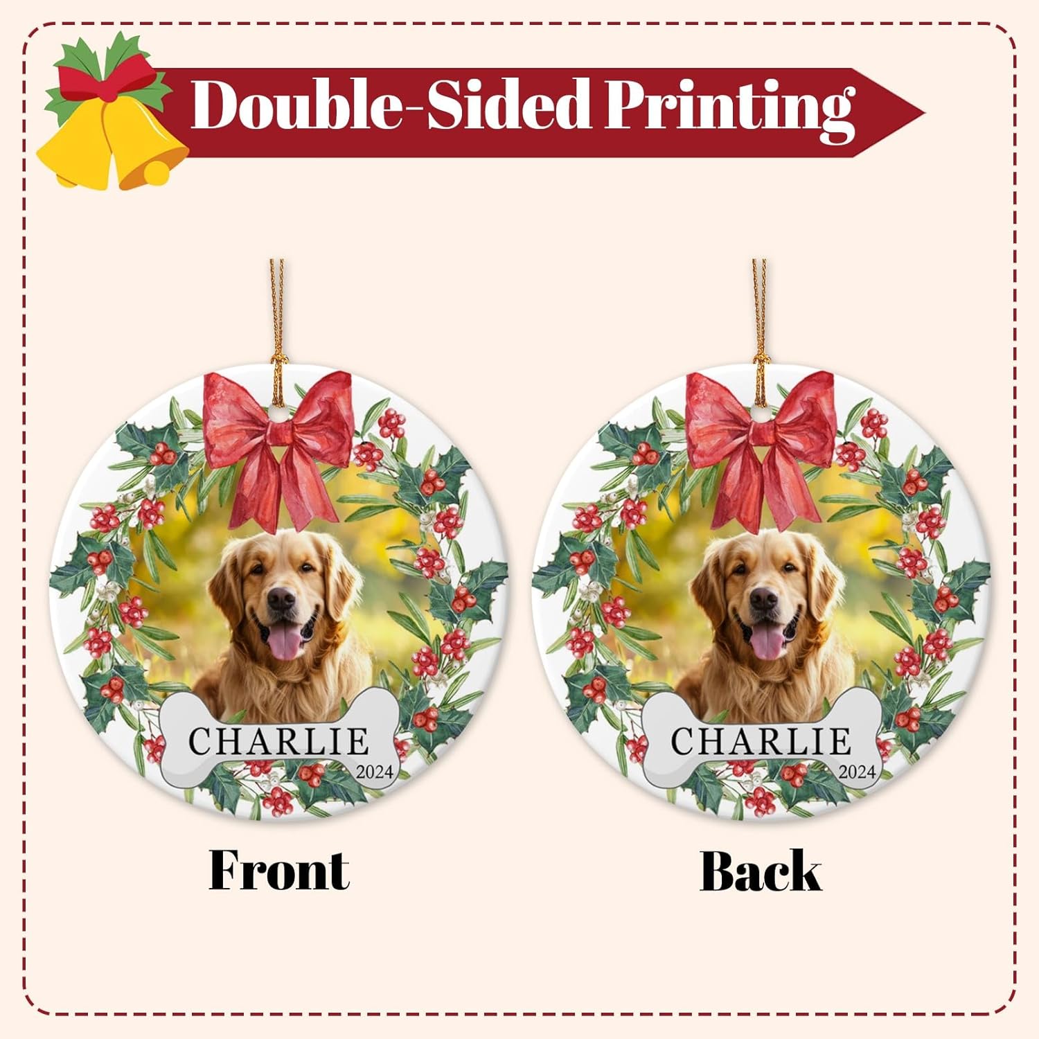 - HIGH QUALITY MATERIAL:Customized dog photo ornaments for Christmas tree are made of high-quality ceramic.Size:2.9".Personalized dog Christmas ornaments 2025 are double-sided color printed, using HD printing technology to create vivid and rich patterns on the ceramic surface,the printed text and picture is not easy to fade. Customizable Christmas ornament is lightweight, easy to carry or give as gifts