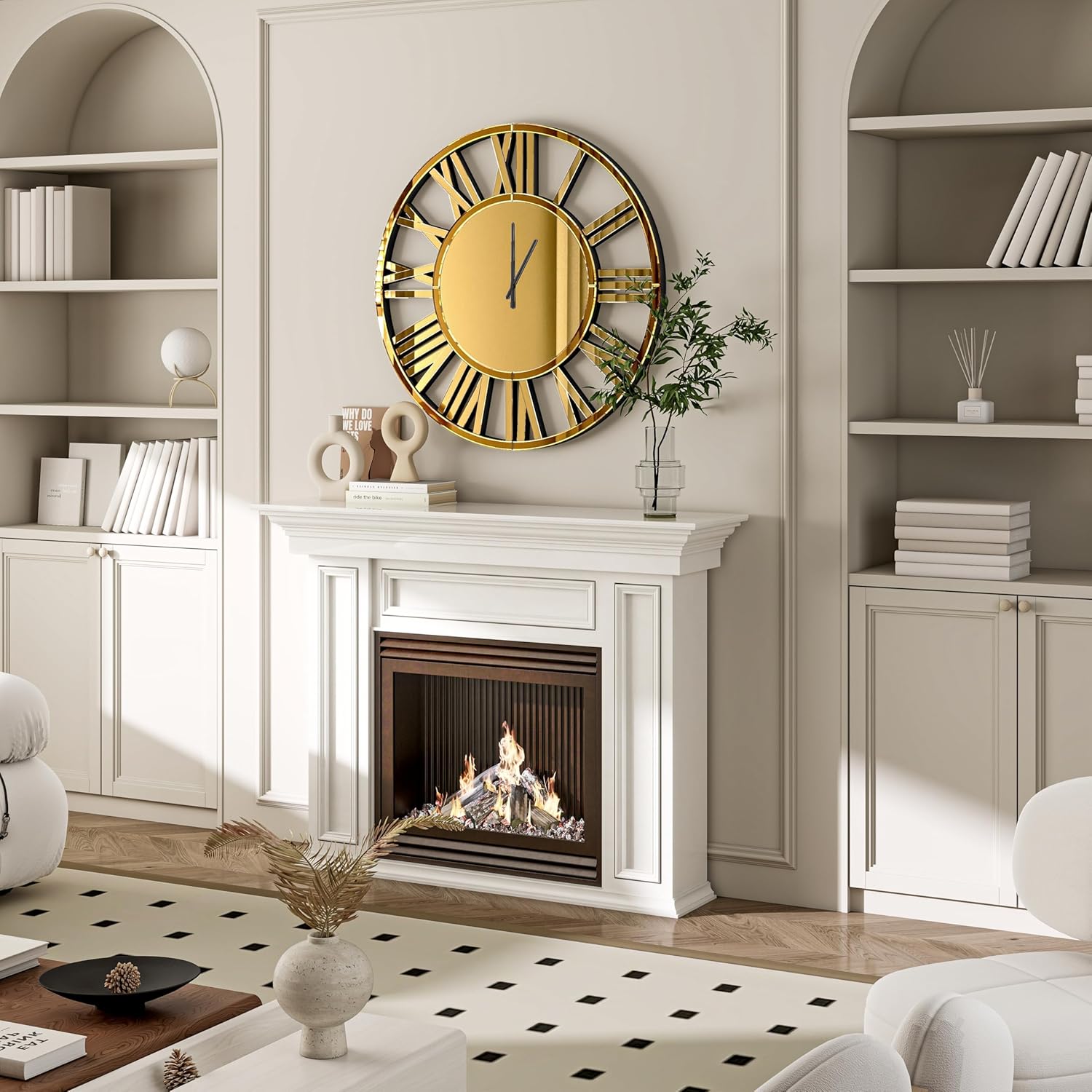 - 【Luxurious & Practical Clock】This gold mirrored wall clock is crafted with a glossy mirror surface and fine beveled edges, exuding elegance and sophistication.This oversized wall clock is more than a timepiece—it’s a luxurious decor piece that elevates your home with timeless elegance.