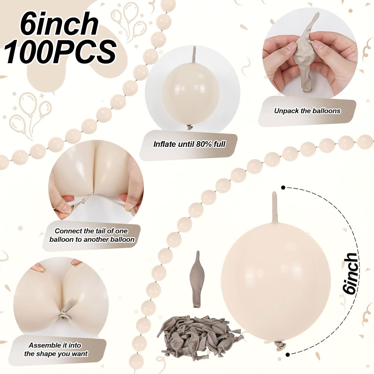 - ๐ซBalloon Chain Garland - You will receive 60 pcs of 10 inch sand white link balloons. Our quick link balloons have a unique tail design that allows balloons link to be easily. More convenient and easier to assemble than regular balloons.