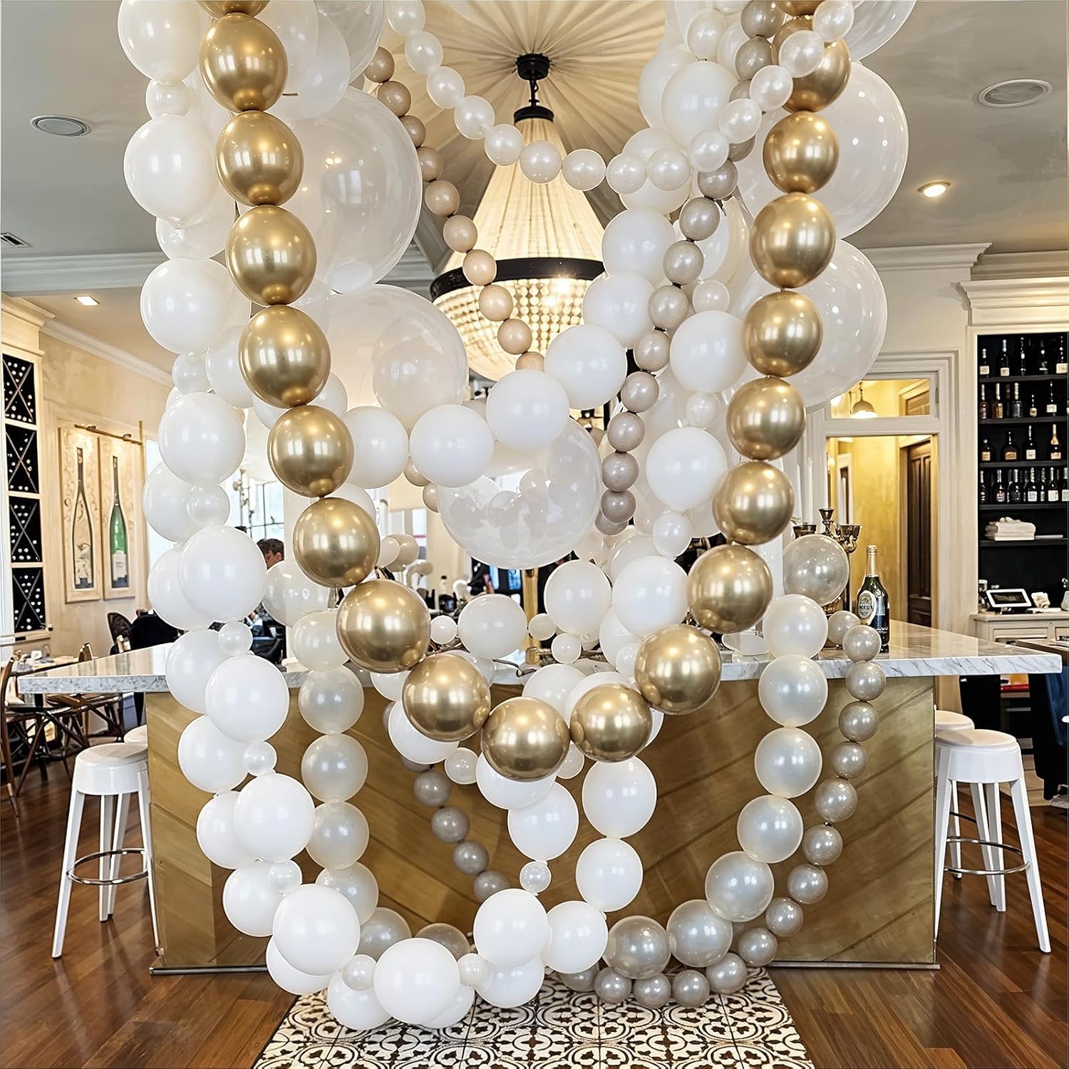 - ๐ซHigh Quality Balloons - Our white pearl link balloons are made of high-quality materials with excellent elasticity and toughness. Linkable balloons are not easy to break or leak, and can stay full for a long time. The chain balloons will not fall off or damage easily during use, providing reliable quality assurance for your decoration needs.