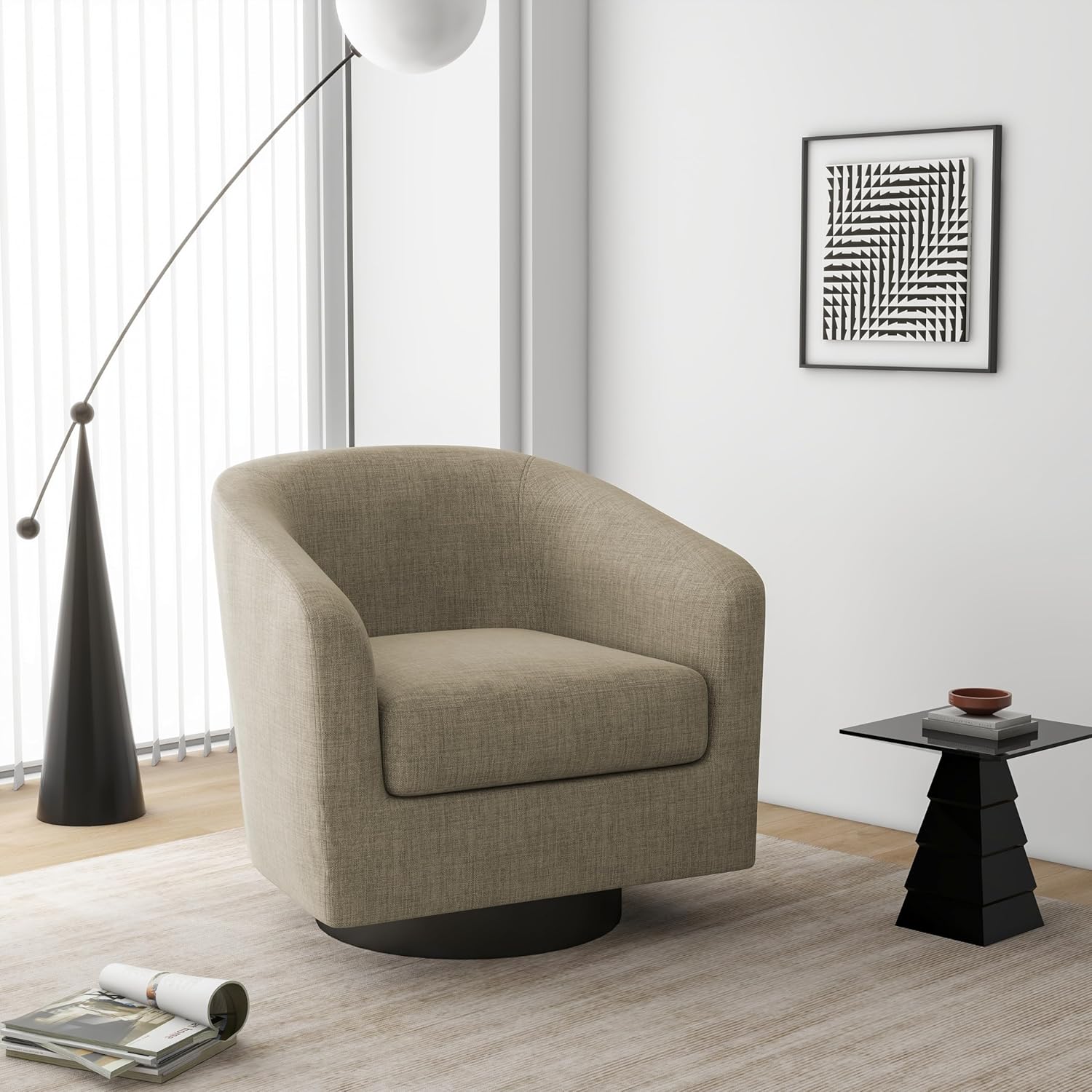 - 360 Degree Swivel Barrel Chair: This 360 degree round swivel chair designed for your leisure comfort. Heavy solid turntable, making it more stable and not wobbly
