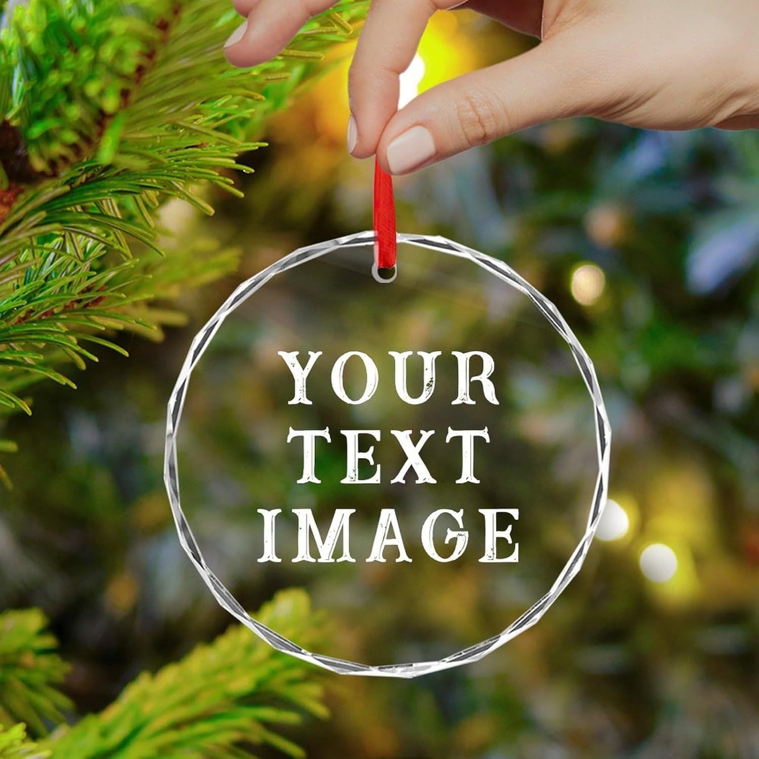 Personalized Christmas Ornaments - Custom Picture & Text Ornaments for Christmas 2024, Baby's 1st Christmas Ornament with Picture for Xmas Tree Custom Gifts for Family, Mom, Dad, Friend (Glass)