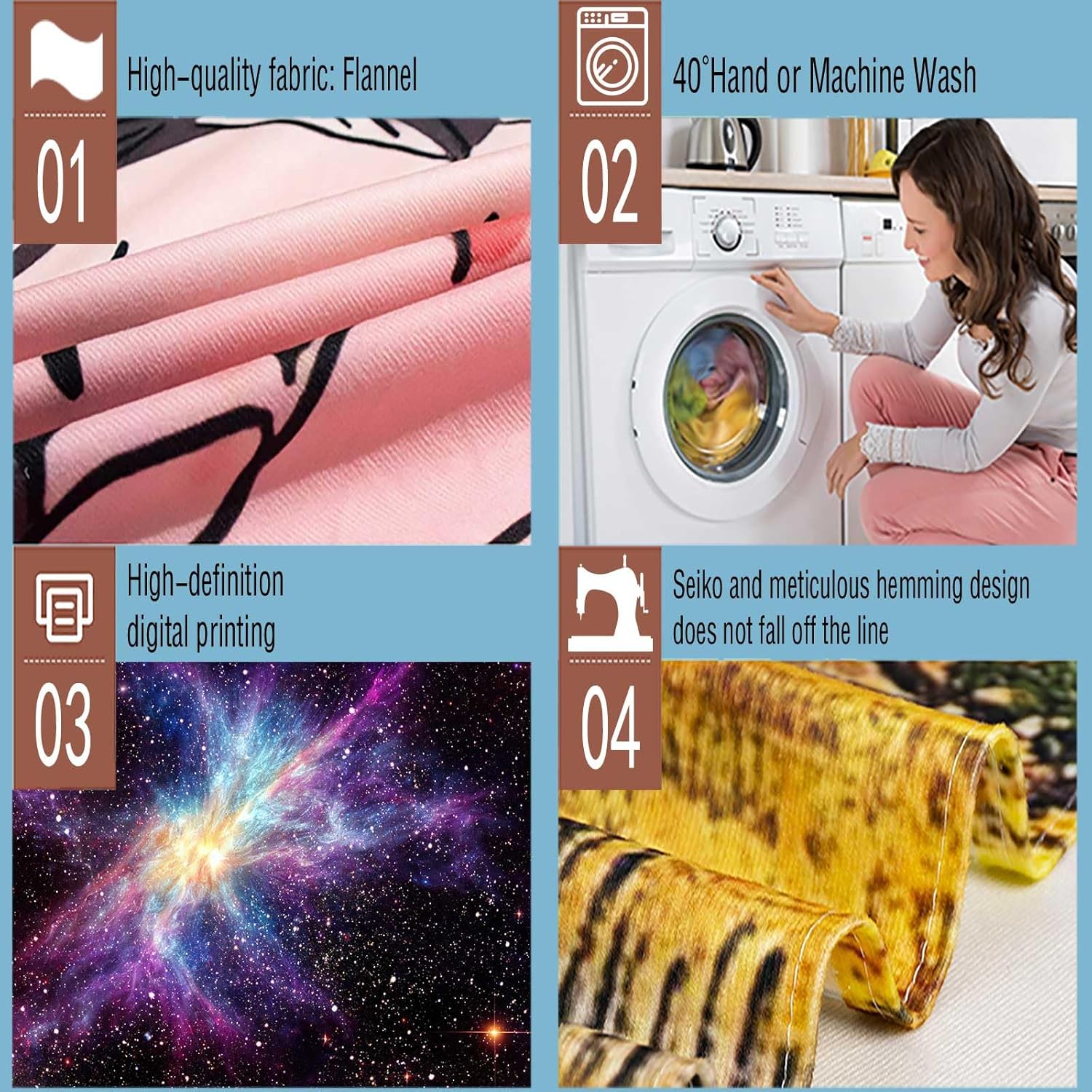 - ☎ High-quality technology: high-definition printing technology has vivid colors and clear images. Dyes that will not fade and will not harm family health. Super comfortable feel, durable, light weight, easy to handle, smooth, comfortable, skin-friendly, durable, fast-drying and non-fading. The most suitable for your home decoration.