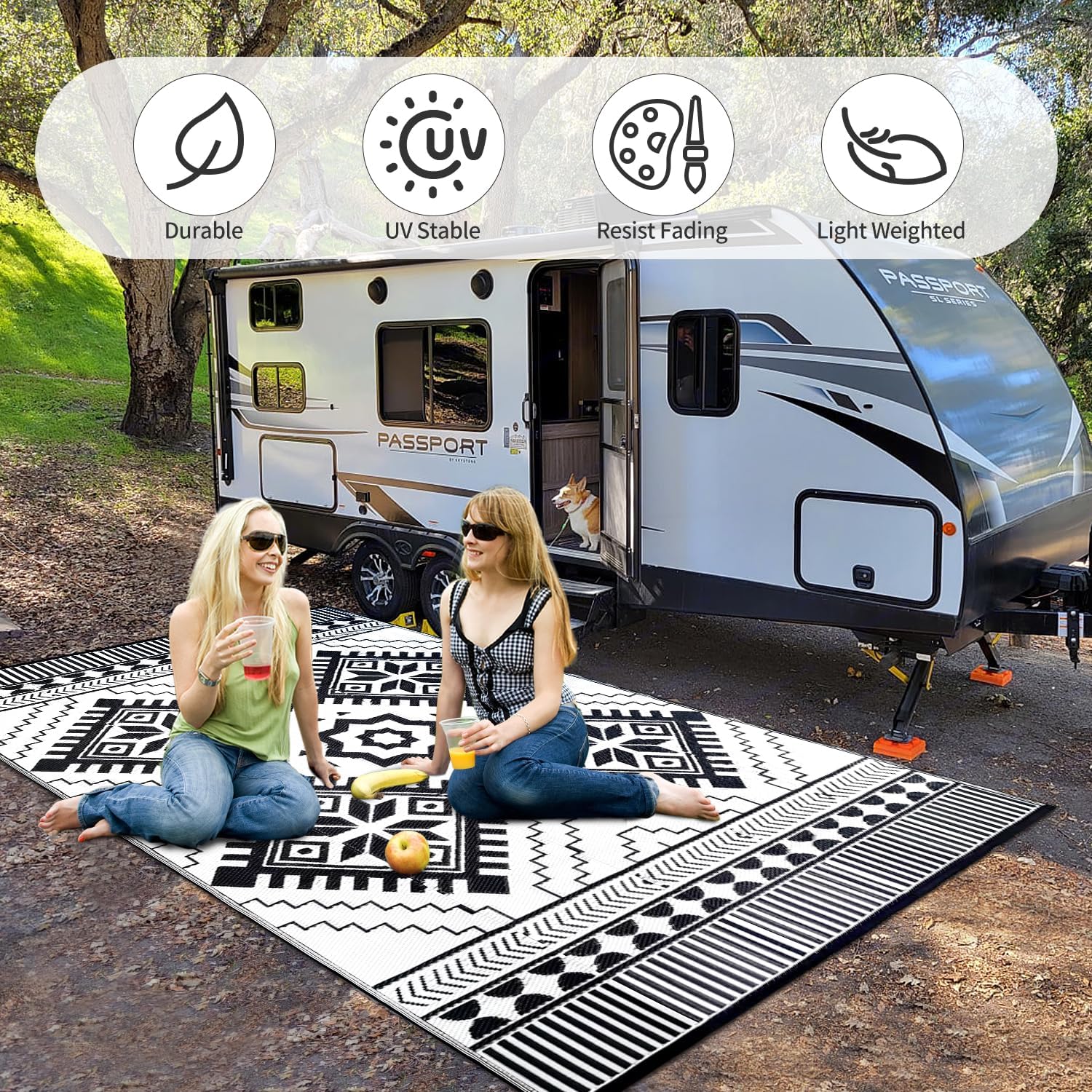 - Reversible & Unique Pattern: Enjoy two unique geometric patterns in one reversible rug design, ideal for patios, camping trips, or RVs. Enhance your space with versatile boho charm;