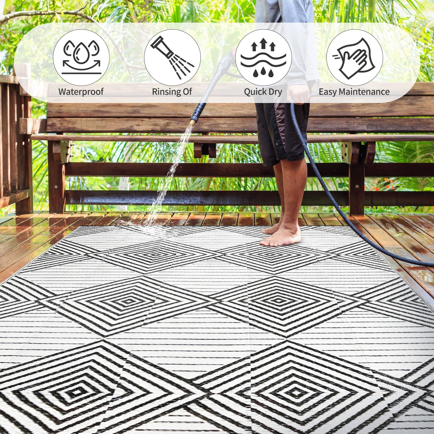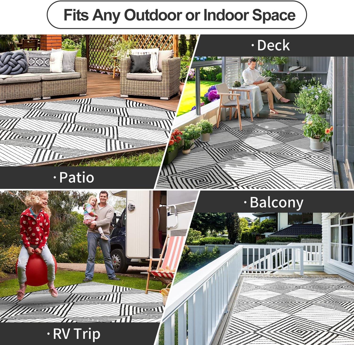 - Lightweight and Travel-Friendly: Designed for portability, this waterproof outdoor rug folds compactly and includes a carry bag, making it ideal for RV trips, camping, picnics, or outdoor events;