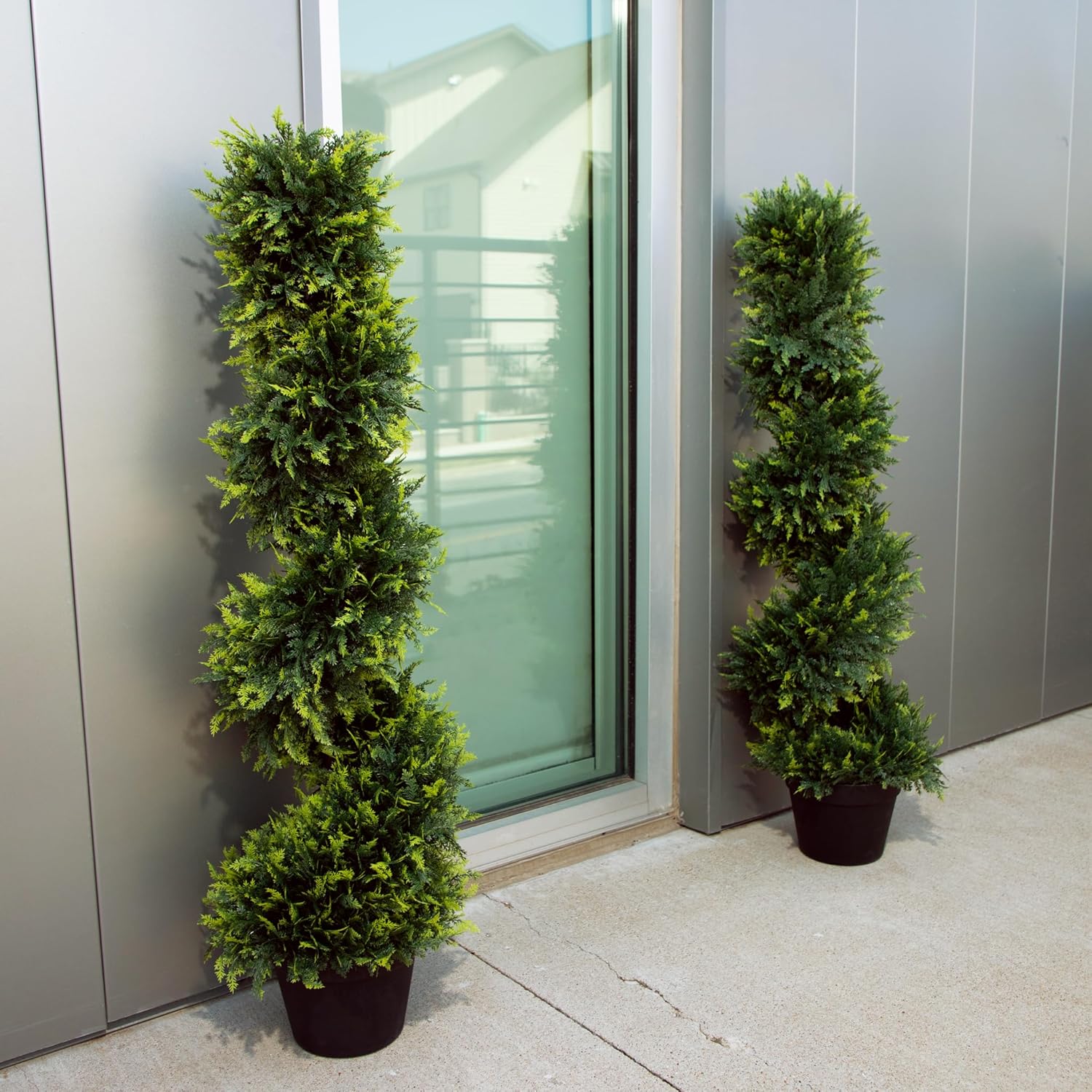 2-Pack Faux Cedar Spiral Topiary Trees - 3.2ft Tall - Planter Included - Artificial Trees for Indoor or Outdoor - Realistic Design with Dense Green Foliage - UV-Protected & Weather-Resistant Plants