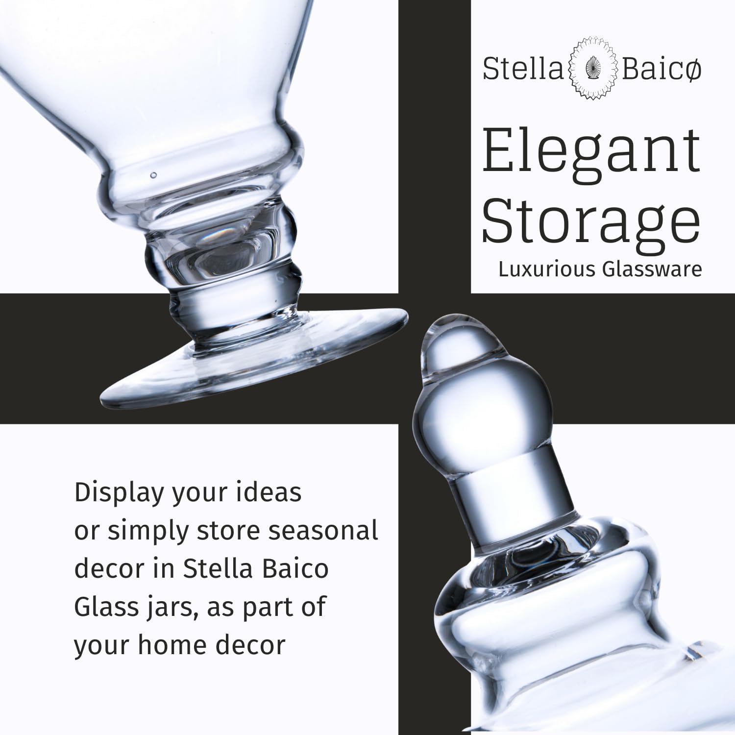 - ELEGANT DESIGN: Stella Baicø candy jars are ideal for a variety of events, including weddings, birthday parties, Christmas, and other special occasions. With stunning storage space, these decorative jars not only serve as beautiful decor but also function as practical containers.
