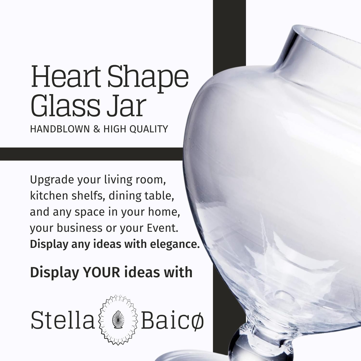 - Versatile and Decorative: The Stella Baicø glass candy jar features a unique heart-shaped design that makes it a stunning and eye-catching display piece. Whether you're showcasing seashells, storing candy, or holding other small treasures, it adds a touch of personality to any space.