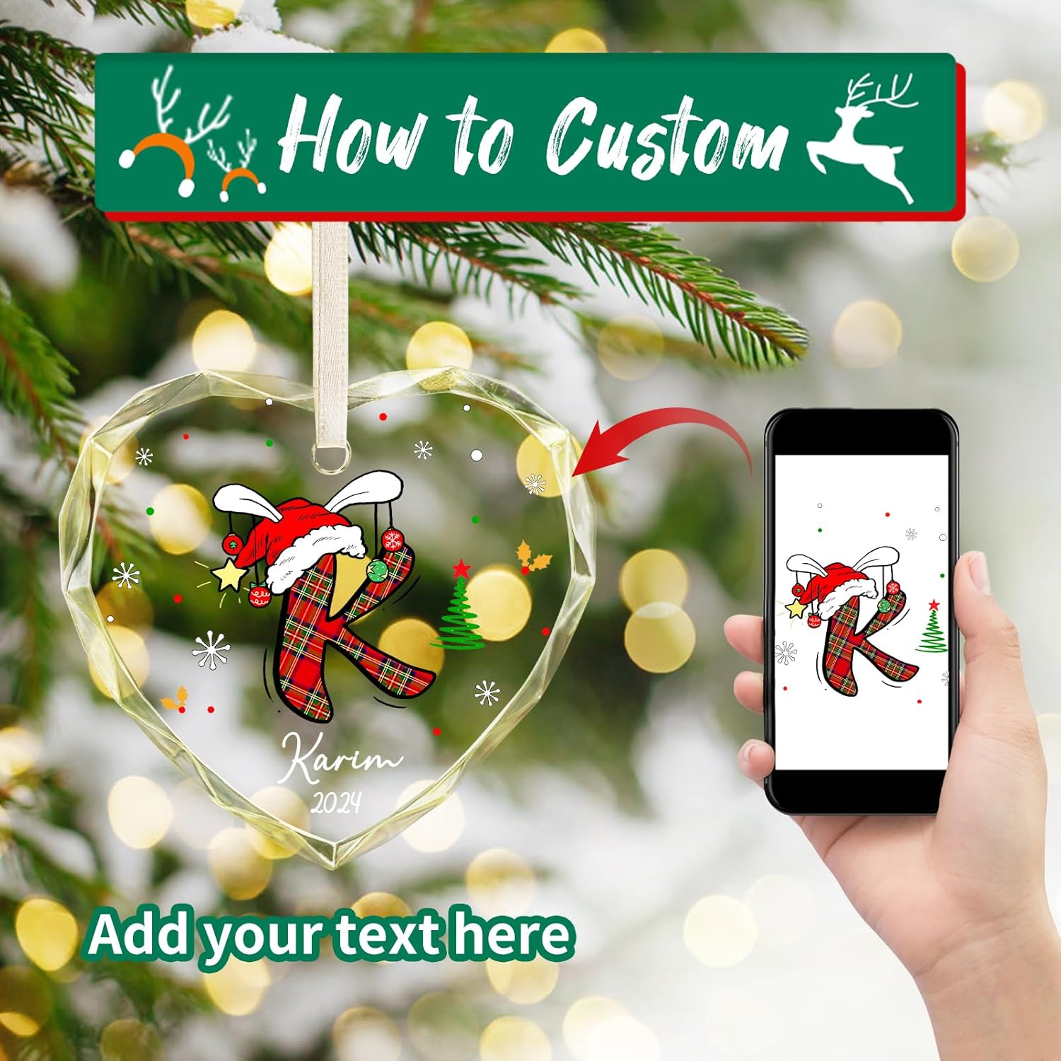 Personalized Christmas Ornaments with Initial Name, Acrylic Custom Monogram Initial A-Z Christmas Ornament 2025 for Kids Family Friends, Customized Letter Name Ornaments for Christmas Tree Decorations