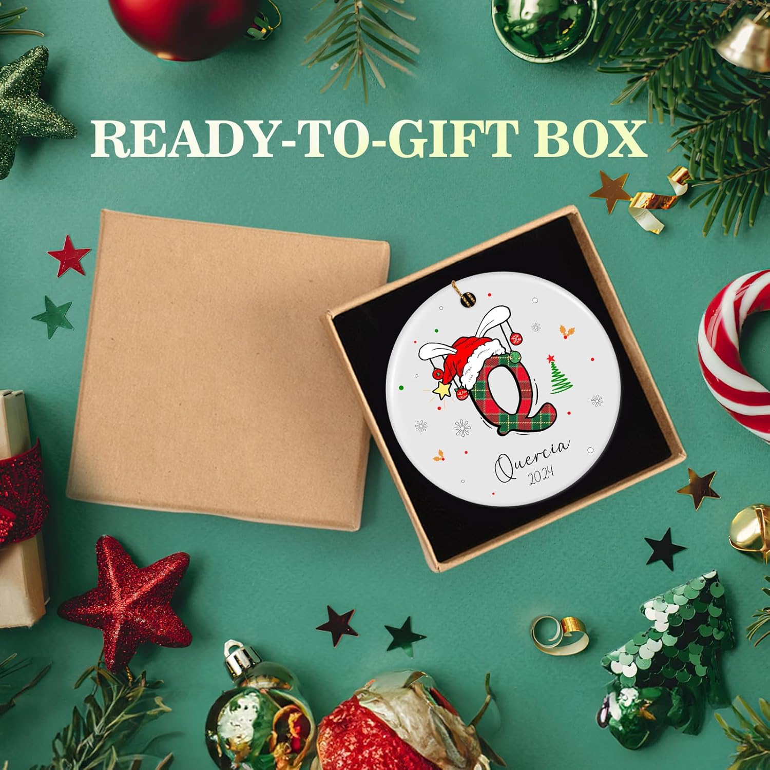 Personalized Christmas Ornaments with Initial Name, Ceramic Custom Monogram Initial A-Z Christmas Ornament 2025 for Kids Family Friends, Customized Letter Name Ornaments for Christmas Tree Decorations