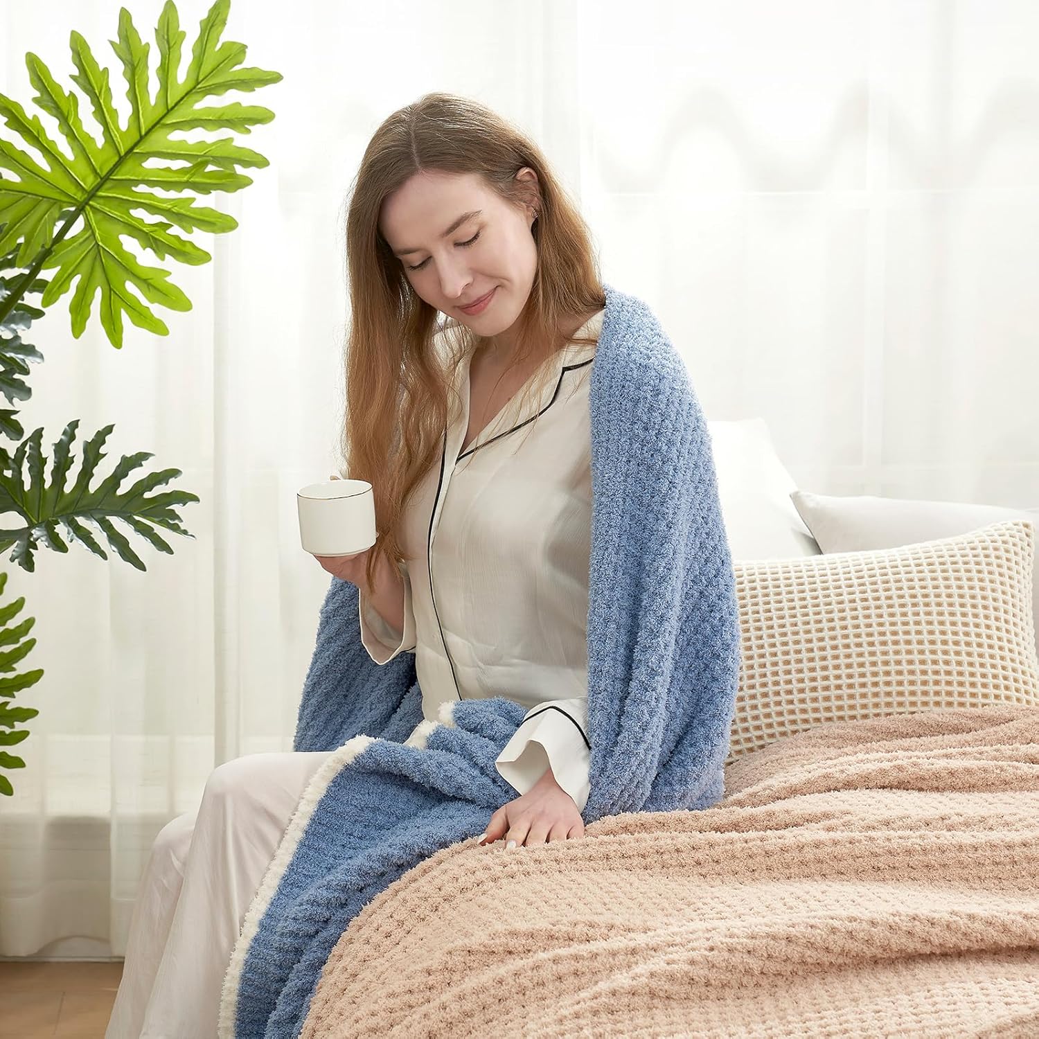 Snuggle Sac Ultra Soft Waffle Throw Blanket for Couch Bed Sofa 50x60 inches, Reversible Blue Blanket Microfiber Fluffy Fuzzy Cozy Knit Throws for Women Mothers Birthday Gifts