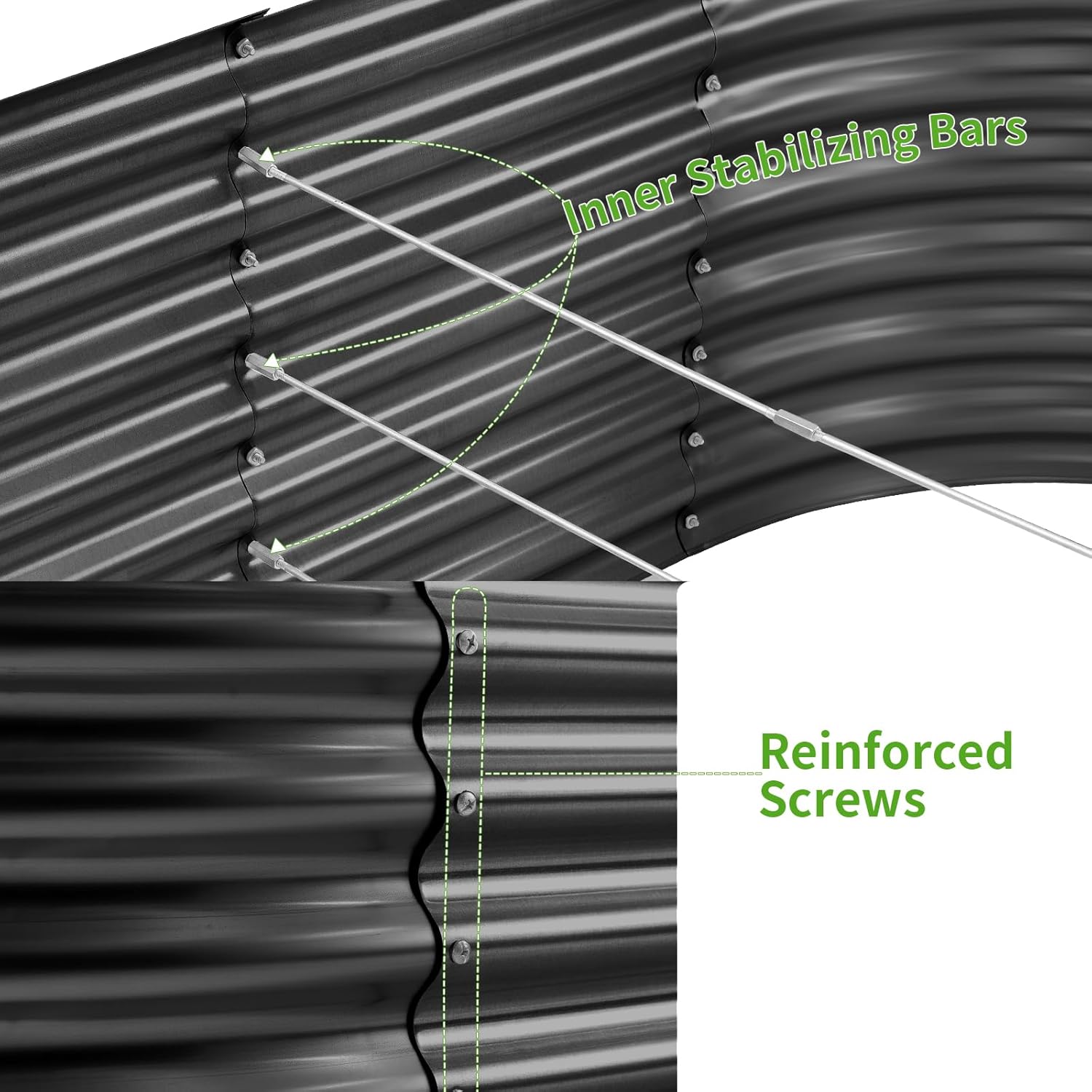 Land Guard 8x4x3ft Oval Galvanized Raised Garden Beds, Large-Capacity Metal Planter Box Outdoor, Durable Deep Raised Garden Bed 3ft Tall, Raised Beds for Gardening Vegetables, Dark Grey