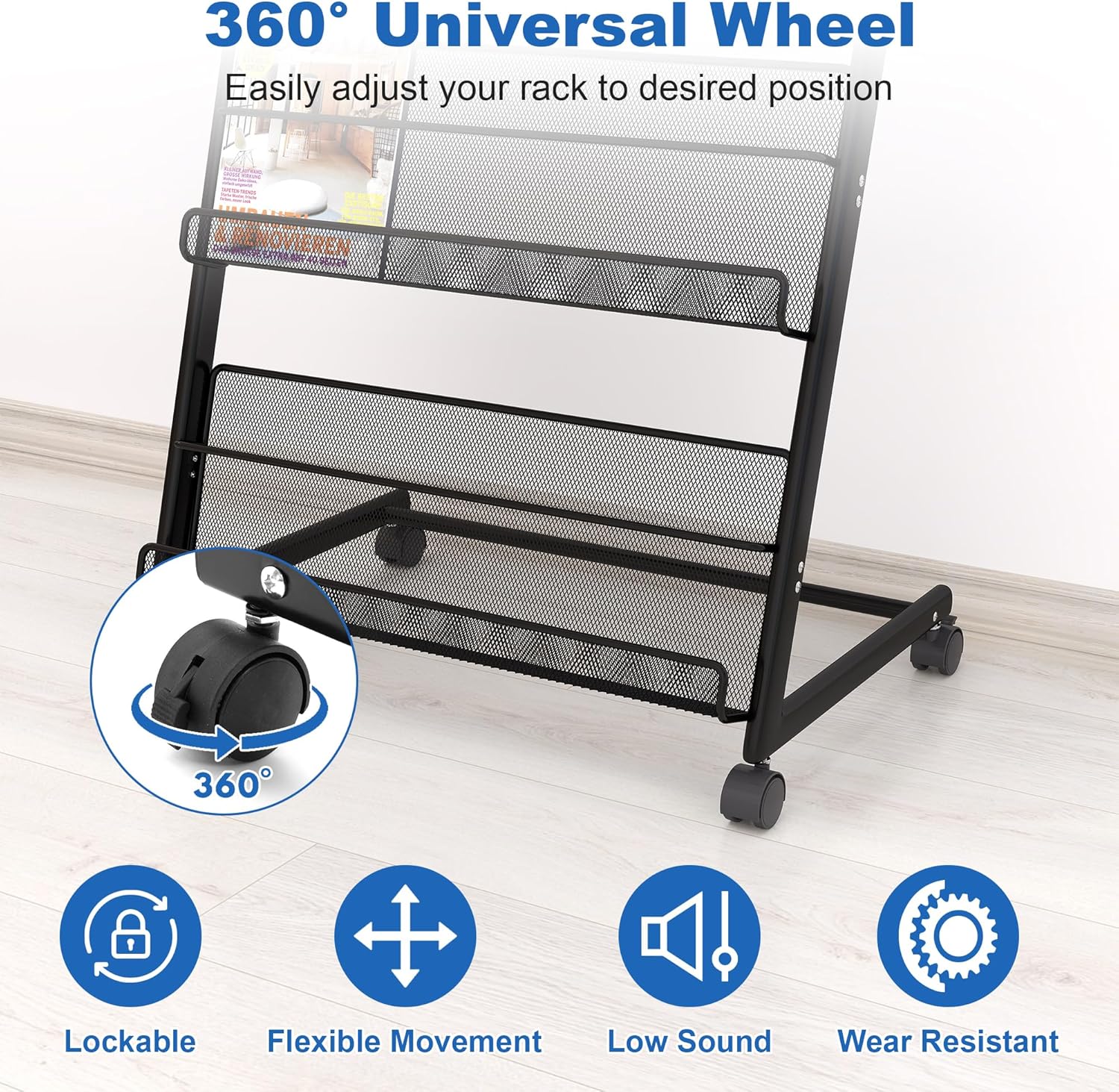 - ๐ใMULTIFUNCTIONAL & EASY TO MOVEใ This brochure display stand features four silent wheels, two of the wheels are equipped with braking functionality,easy to move to any place.The top tier allows you to post ads signs,suitable for literature stand for trade shows, exhibition, hotel,hospitals,reception areas, libraries,bank lobbies, event rooms, offices, any other venues requiring information display.