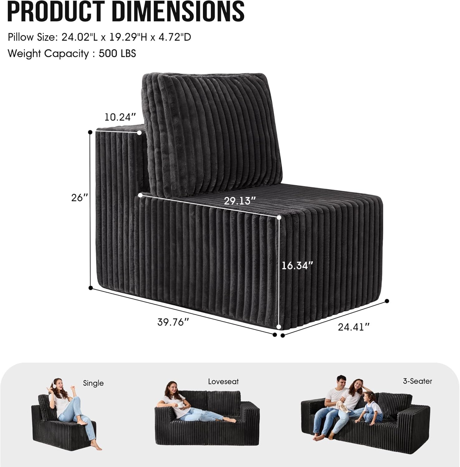 - No Assembly Required:Escape the typical furniture setup hassle with our 1 seat modular cloud sofa couch. Just unpack the vacuum package and allow them 2-3 days to regain resilience. Just delight in the ease of a no-assembly nirvana!