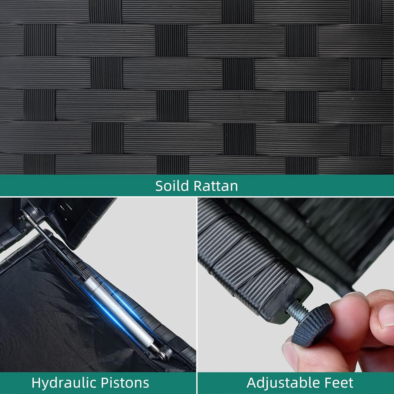 - Robust Dual Construction: Crafted with a powder-coated steel frame and woven wicker, this deck box is highly protecting from sun, water, and rust, blending seamlessly into any setting.