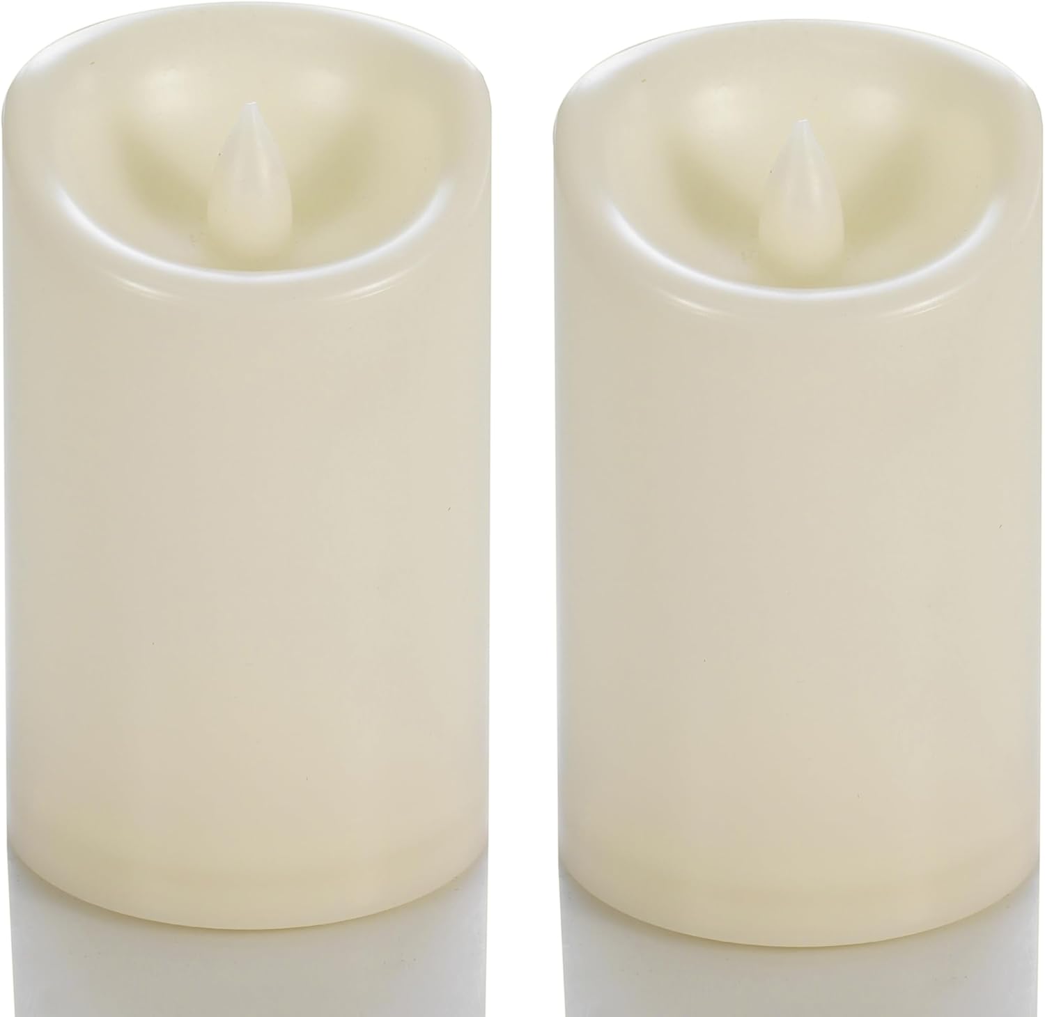 CANDLE CHOICE Waterproof Outdoor Battery Operated Flameless Candles with Timer Flickering Plastic Resin Electric LED Pillar Lights for Lantern Patio Garden Wedding Party Decorations 3x5 Inches 2 Pack