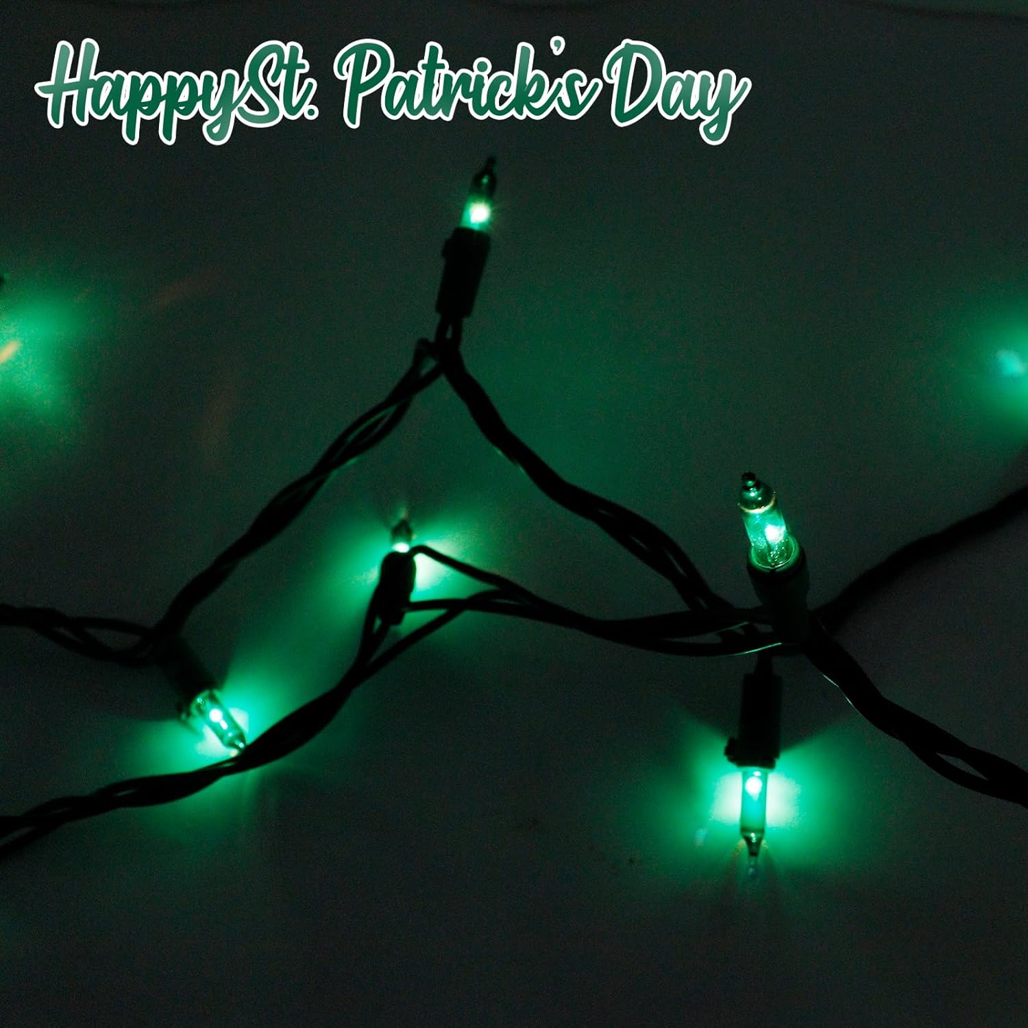 St. Patrick's Day Mini String Lights Green Christmas Lights, 25FT 100 Incandescent Bulbs Green Lights with Green Wire for Christmas Tree, Garland, Indoor & Outdoor St Patricks Day Decoration