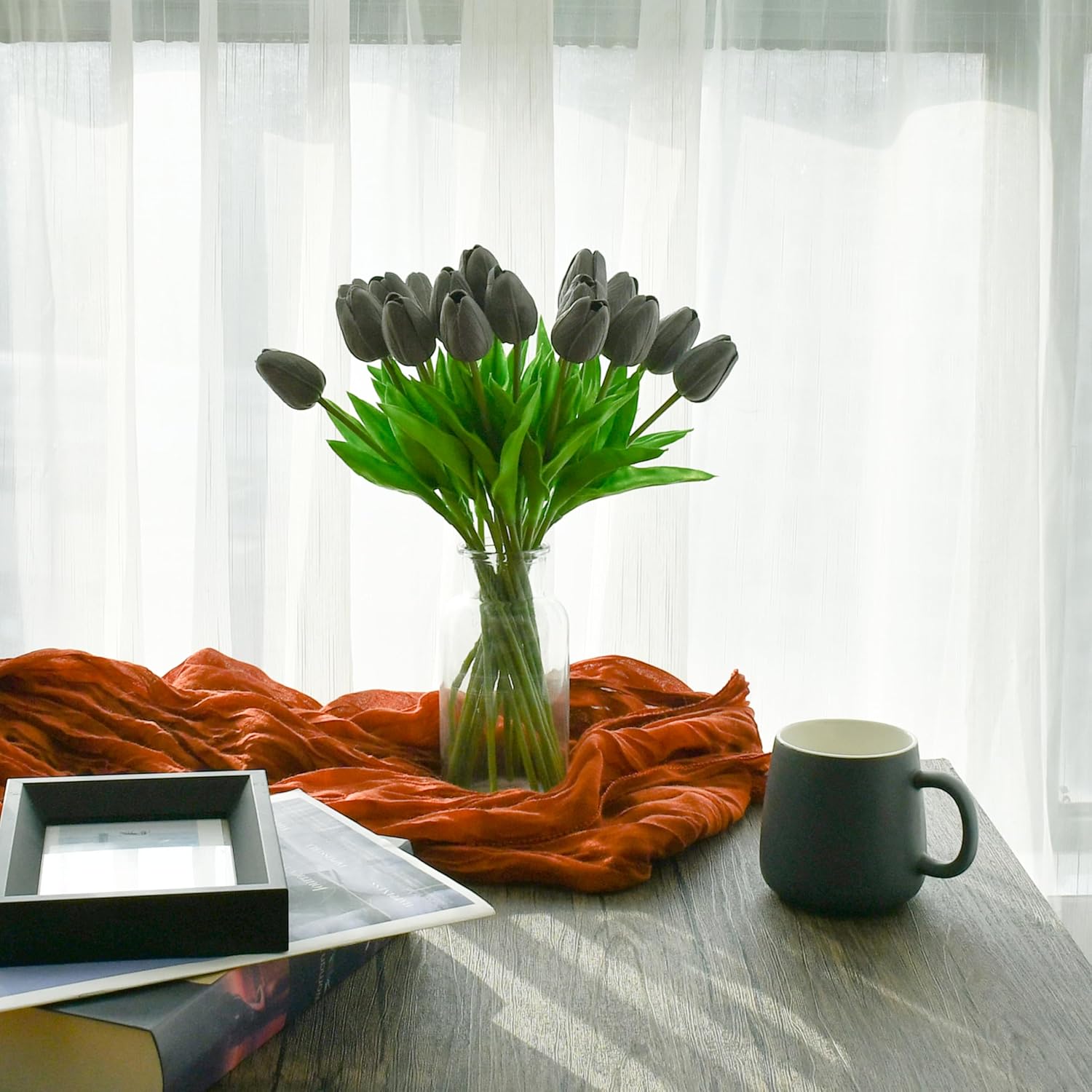 Mandy's Artificial Tulips 20 Stems Dark Grey PU Faux Flowers for Wedding Home Decor 13.5 Inch