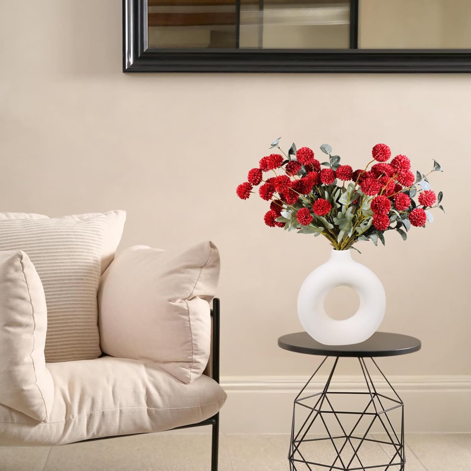 - Elegant Burgundy Centerpiece - Enhance your wedding with our burgundy artificial flowers, perfect for creating sophisticated burgundy wedding decor. These realistic dark red small mum flowers complement any table setting, adding a touch of love to your special day. Each package include 10 stems of burgundy flower stems in total of 50 flower balls, and 2 branches of green eucalyptus stems.