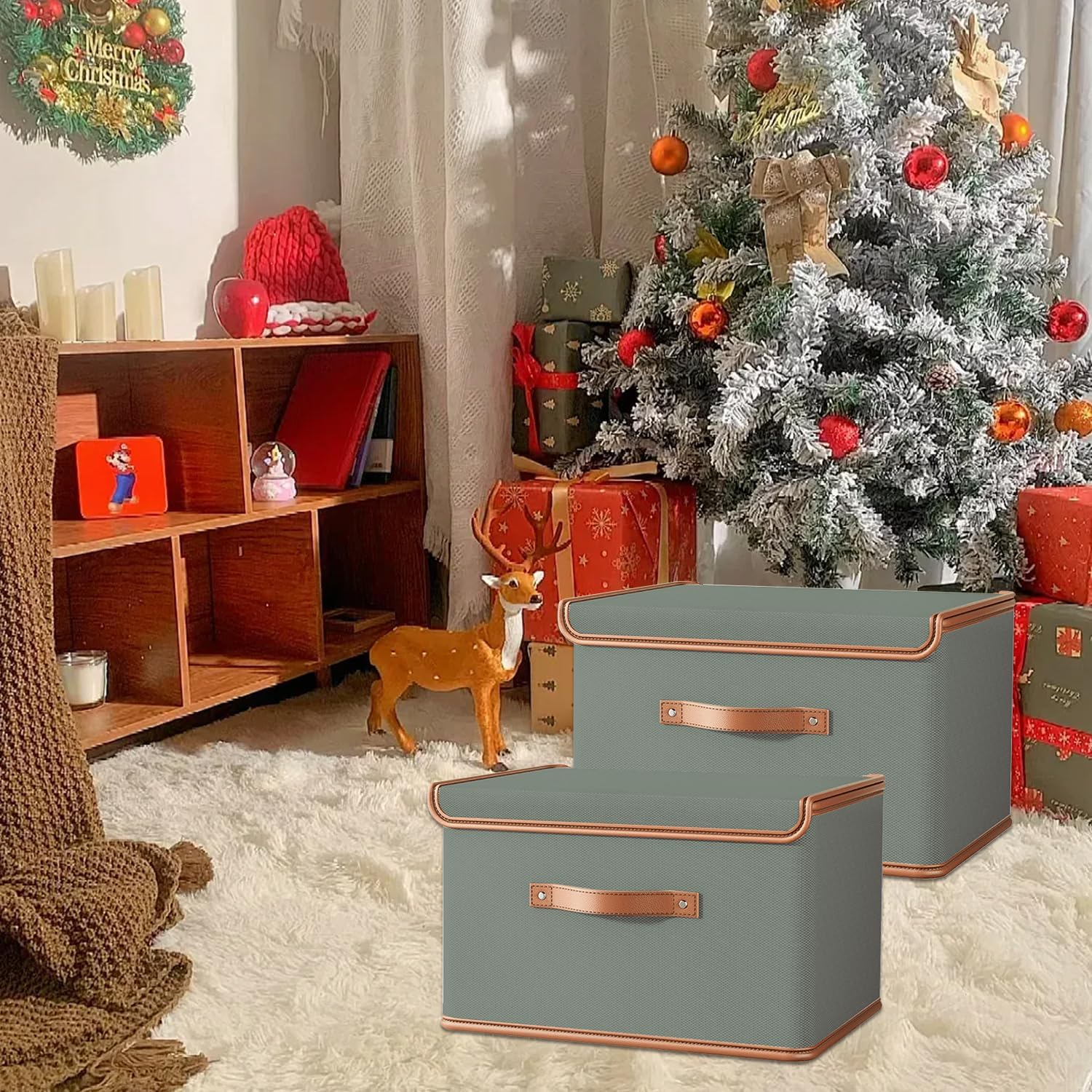 Tuza 2 Pack Storage Bins with Lids, Collapsible Closet Organizer Container, Fabric Organizer Box with Handles, Decorative Storage Boxes with Lids for Organizing Clothes, Blanket, Grey, Extra Large