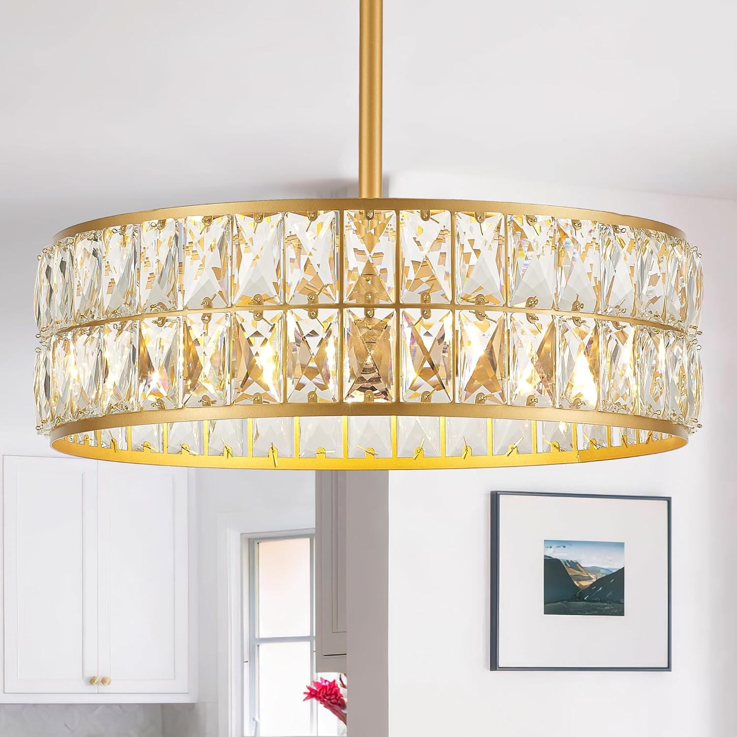 16โ 4-Light Modern Crystal Chandeliers Gold Dinning Room Light Fixture, Round Pendant Light Kitchen Island Chandelier, Flush Mount Ceiling Light for Living Room Entryway Bedroom Foyer