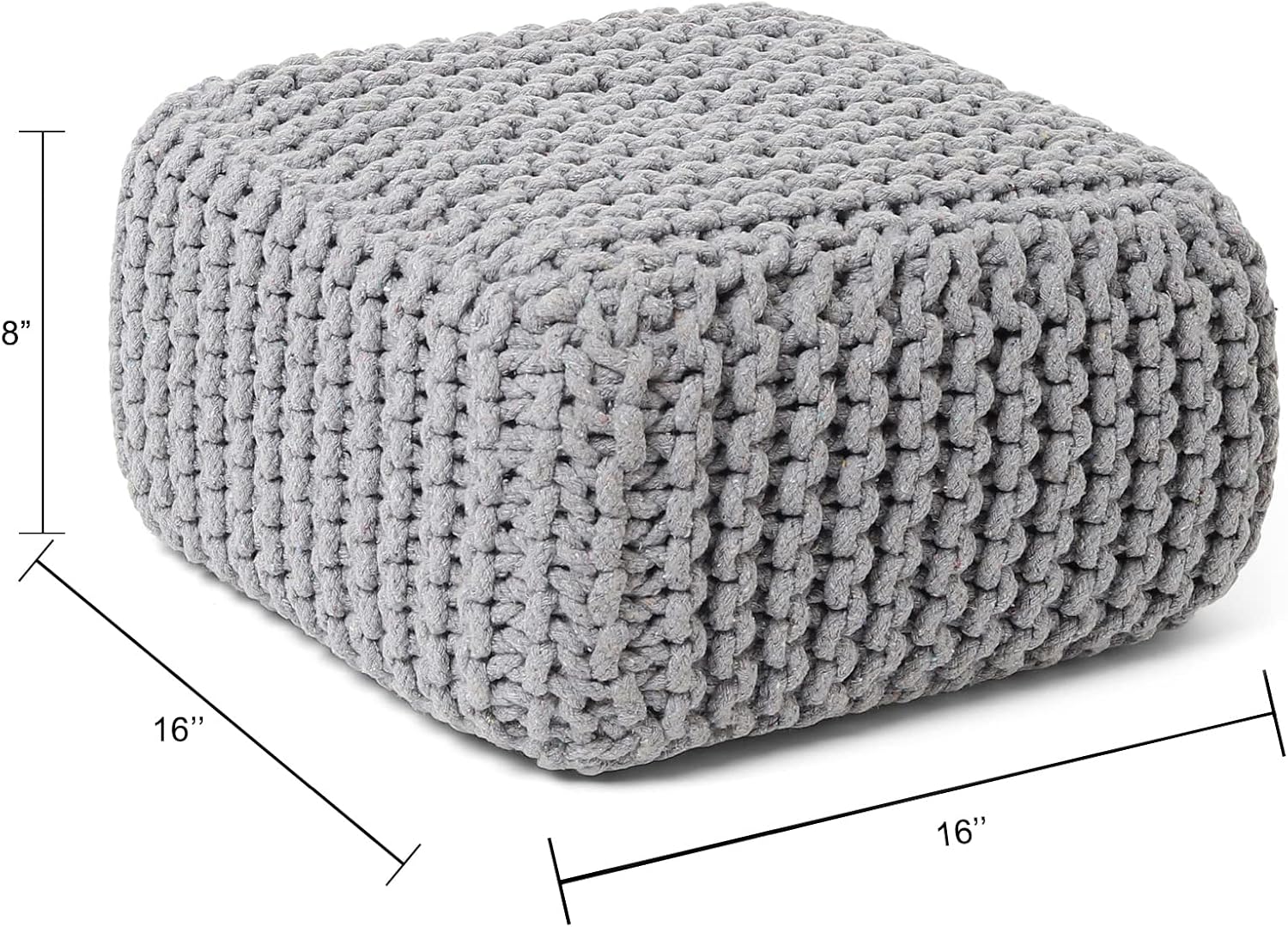 - WHERE STYLE EFFORTLESSLY BLENDS WITH FUNCTION: Our handcrafted cube knitted pouf/ottoman foot rest is a beautiful accent piece for your home or business. It complements any kind of interior décor and is perfect for creating extra seating or for using as a footrest . Put one on display in the living room, bedroom, playroom, kid’s room, nursery, or any other room in and around your home. Give a Comfortable feeling to hardwood floors with our Hand Knitted Cotton Pouffe Ottoman.