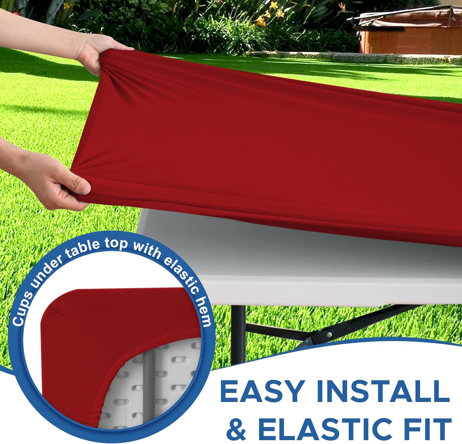Fitted Tablecloth for 8 Foot Rectangle Tables-6 Pack Red Elastic Outdoor Picnic Table Cover-Spandex Stretch Folding Table Cloths 8ft for Camping Dining Room Patio Kitchen Banquet Party