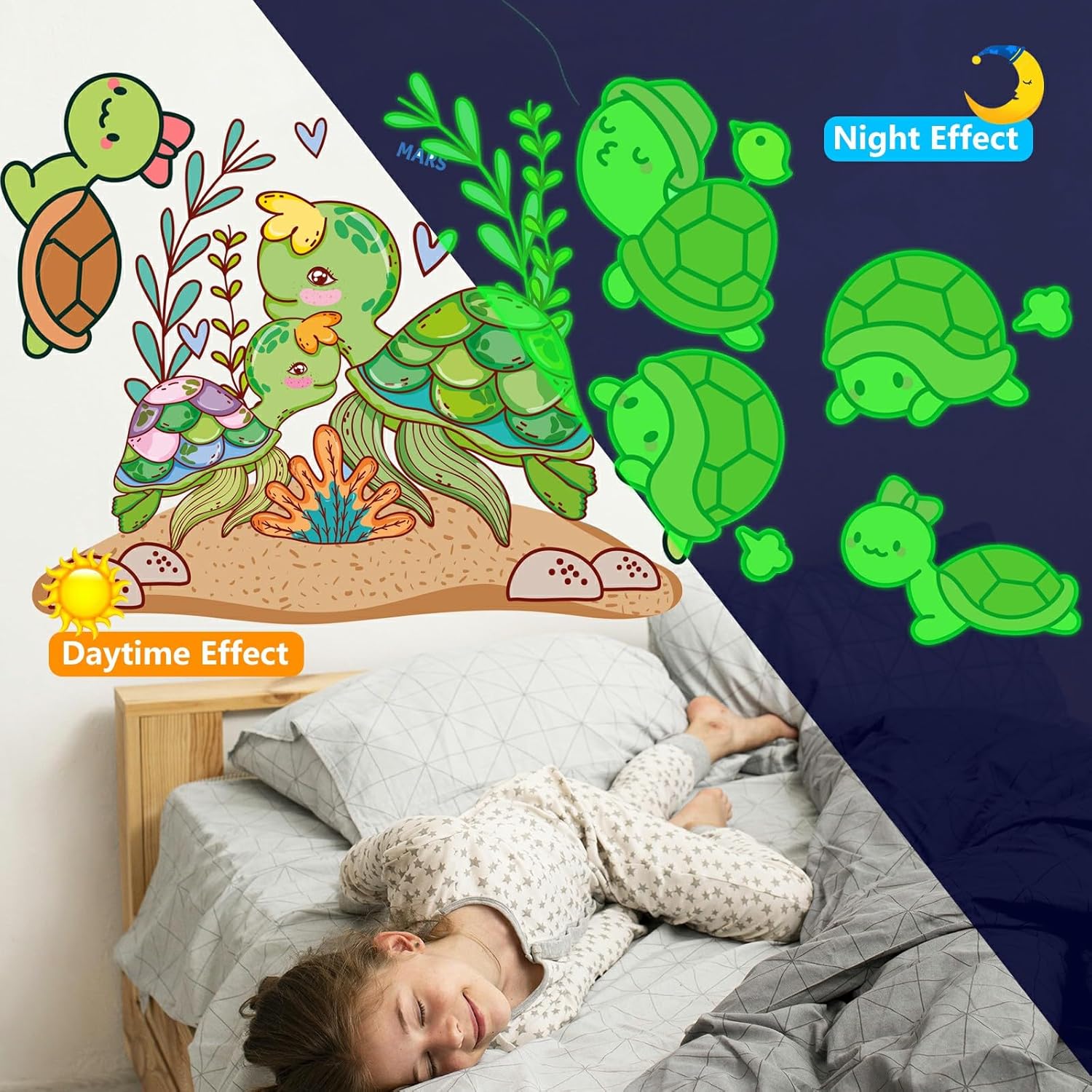 - ✦ DIY Wall Decals: You will get 4 sheets (Size of each sheet: 11.8 x 8.26 inch) of glowing Cute Turtles wall decals in a set, can be combined arbitrarily.The cute sea turtle wall stickers can be easily matched with a variety of home decoration styles, children can DIY a fairy-tale ocean world according to their own preferences.