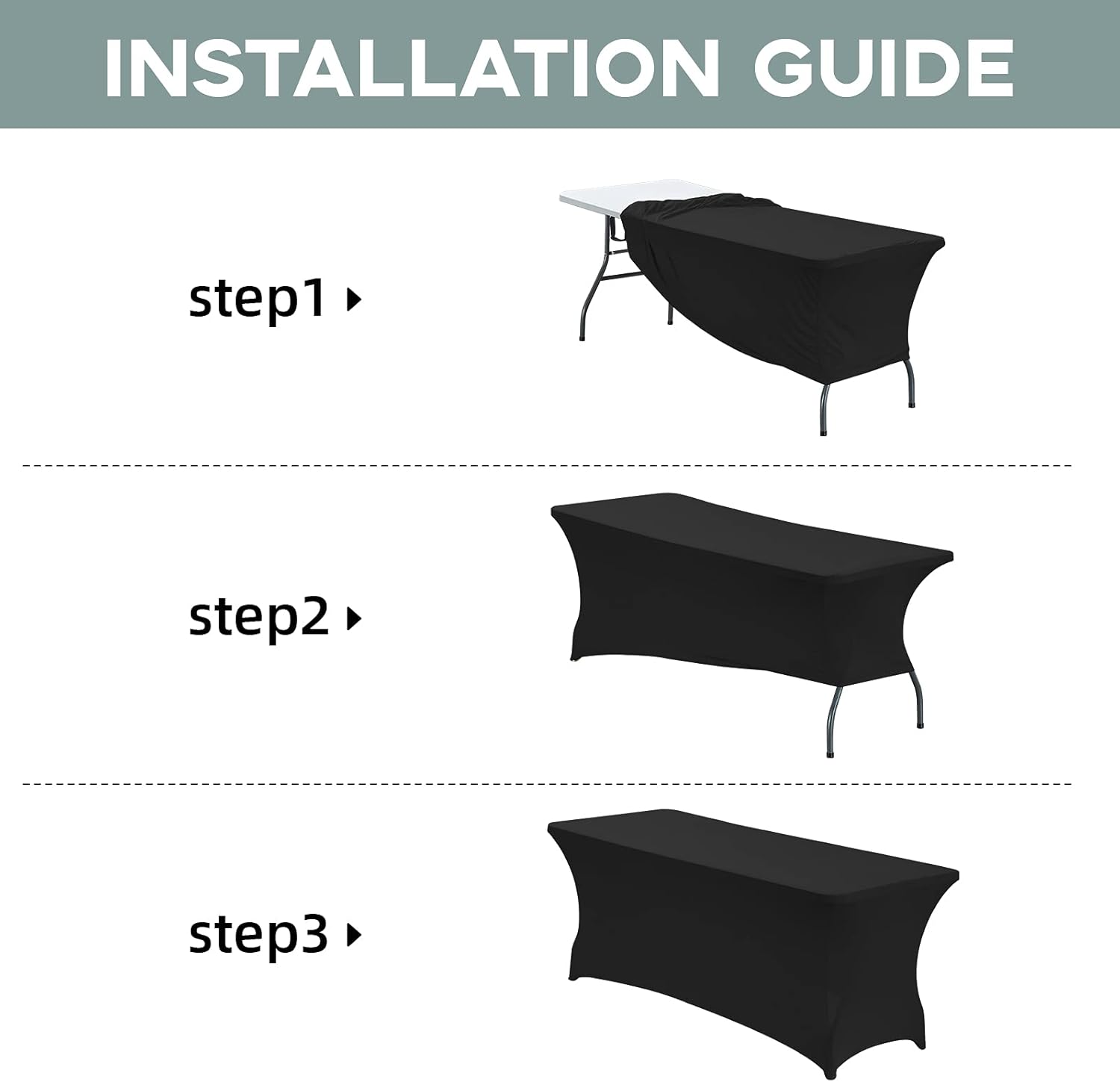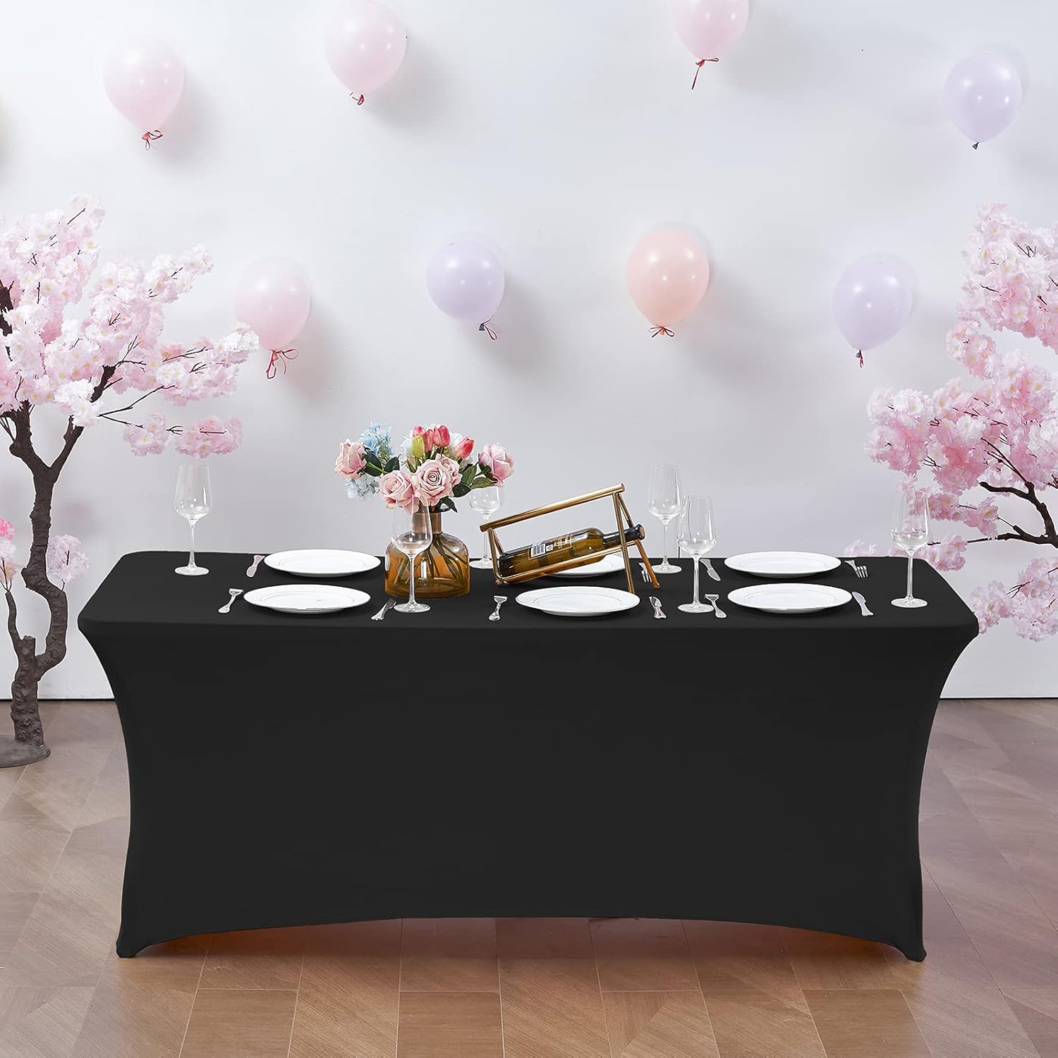 CWK 6FT 2Pcs Stretch Spandex Table Cover for Rectangular Tables - Elastic Fitted Tablecloth for Folding Tables, Wrinkle Resistant, Durable Table Protector for Parties,Weddings,Banquets &Events (Black)
