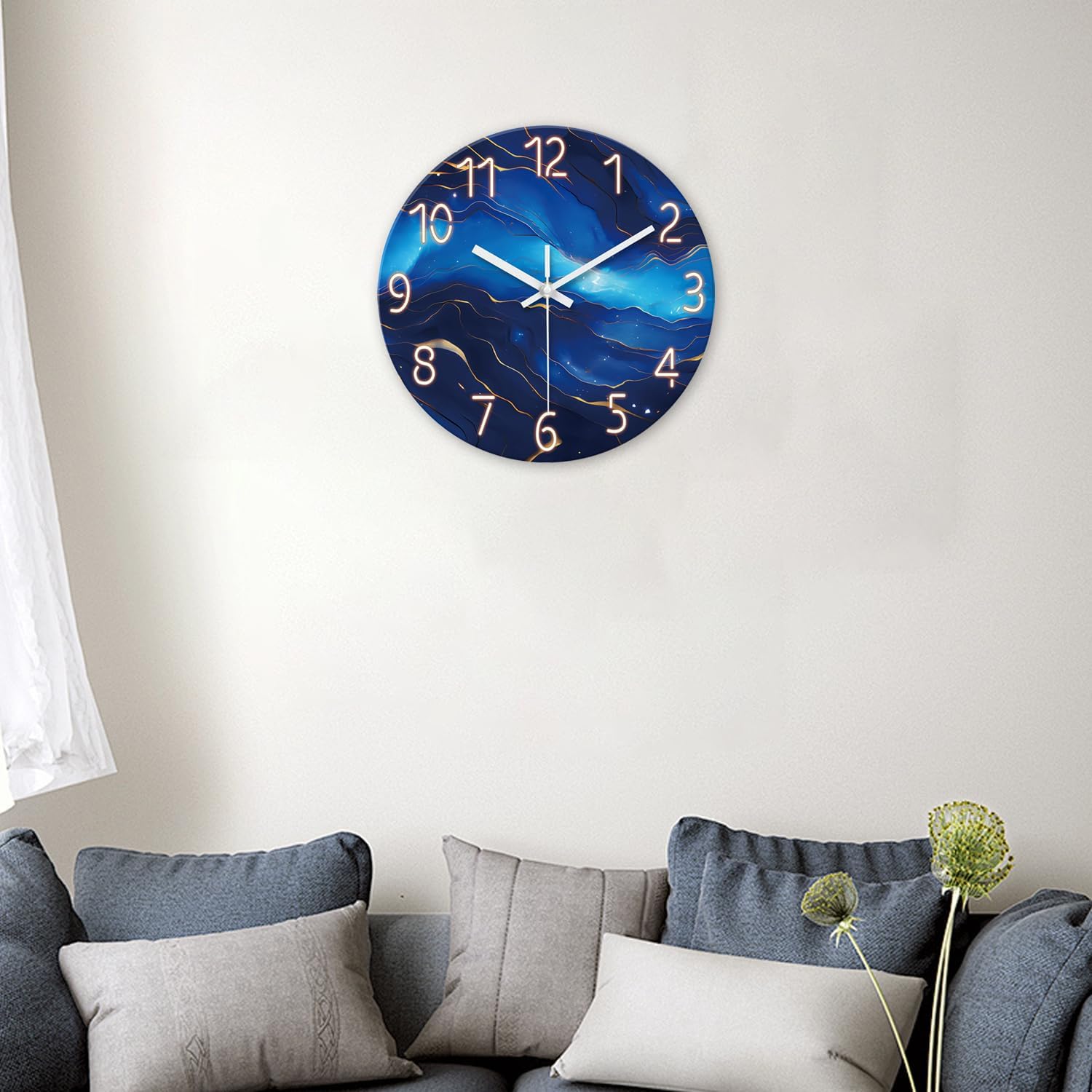 - 5.[Beautiful Decoration] - The blue wall clock keeps time accurately and stylishly,the unique wall clock suitable for kitchen wall decor,classroom decor, bathroom wall decor,home decor wall,office wall decor,decor for bedroom,dining room decor.