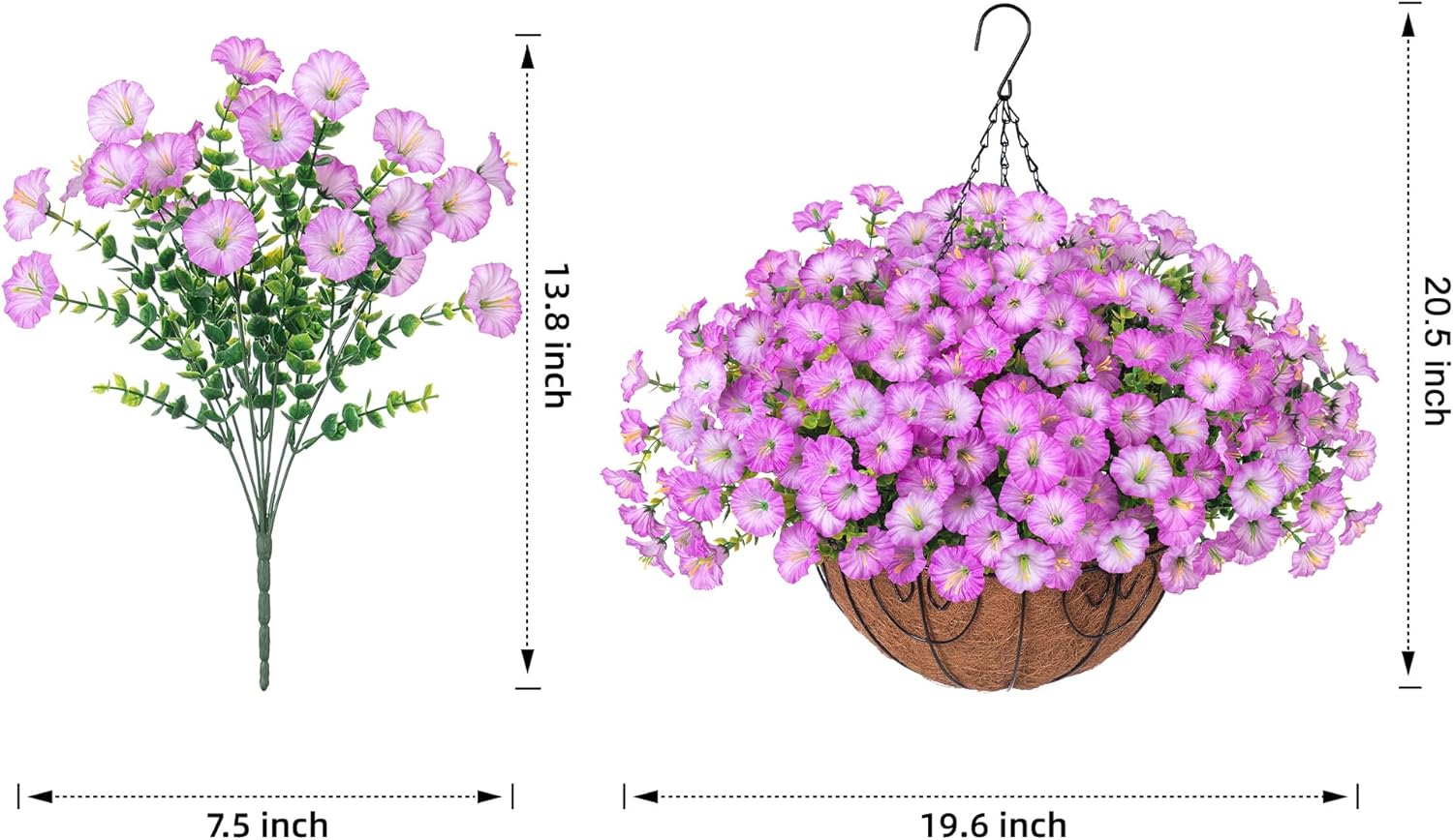 - ๐ข Artificial Hanging Morning Glory Flowers Basket: Package include 12 bundles Realistic silk morning glory match with green eucalyptus leaves, 1 Hanging Basket with chain, 1 foam, 1 green hat. Enjoy vibrant blooms year-round, regardless of the season or weather conditions.