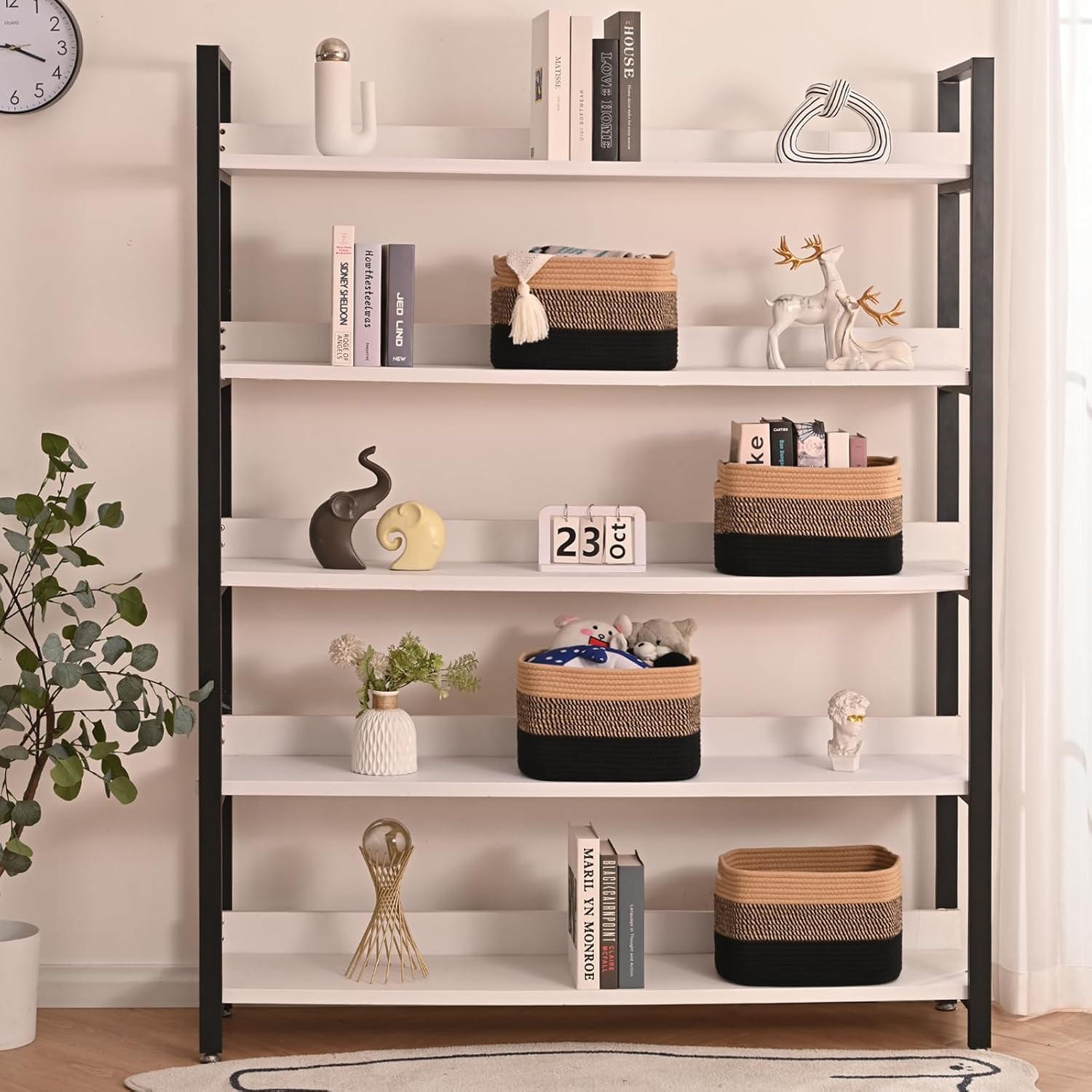 Storage Baskets for Shelves Organizing, Woven Cotton Rope Baskets for Storage, Book Basket, Towel Basket, 12.5"Lx9.1''Wx7.9''H (4 Packs) Gradient Black & Jute