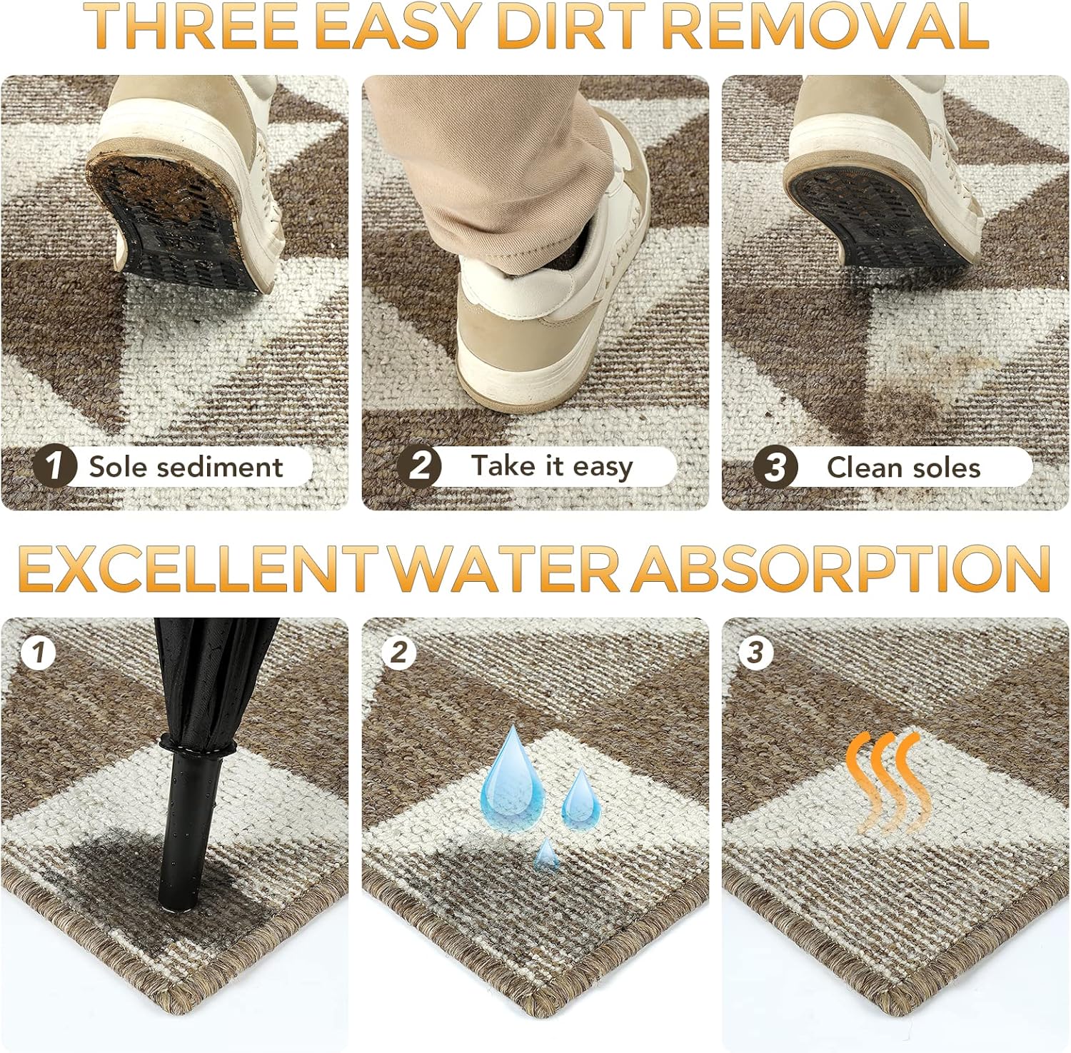 - Durable & NON-SLIP: Our Indoor Doormat is made of high-quality absorbent polypropylene fabric, uses double layer technology which absorb moisture and dirt from shoes quickly, makes your floors clean and dry. And the non-skid TPR rubber backing won't scuff floors, perfect for both indoor and outdoor use.