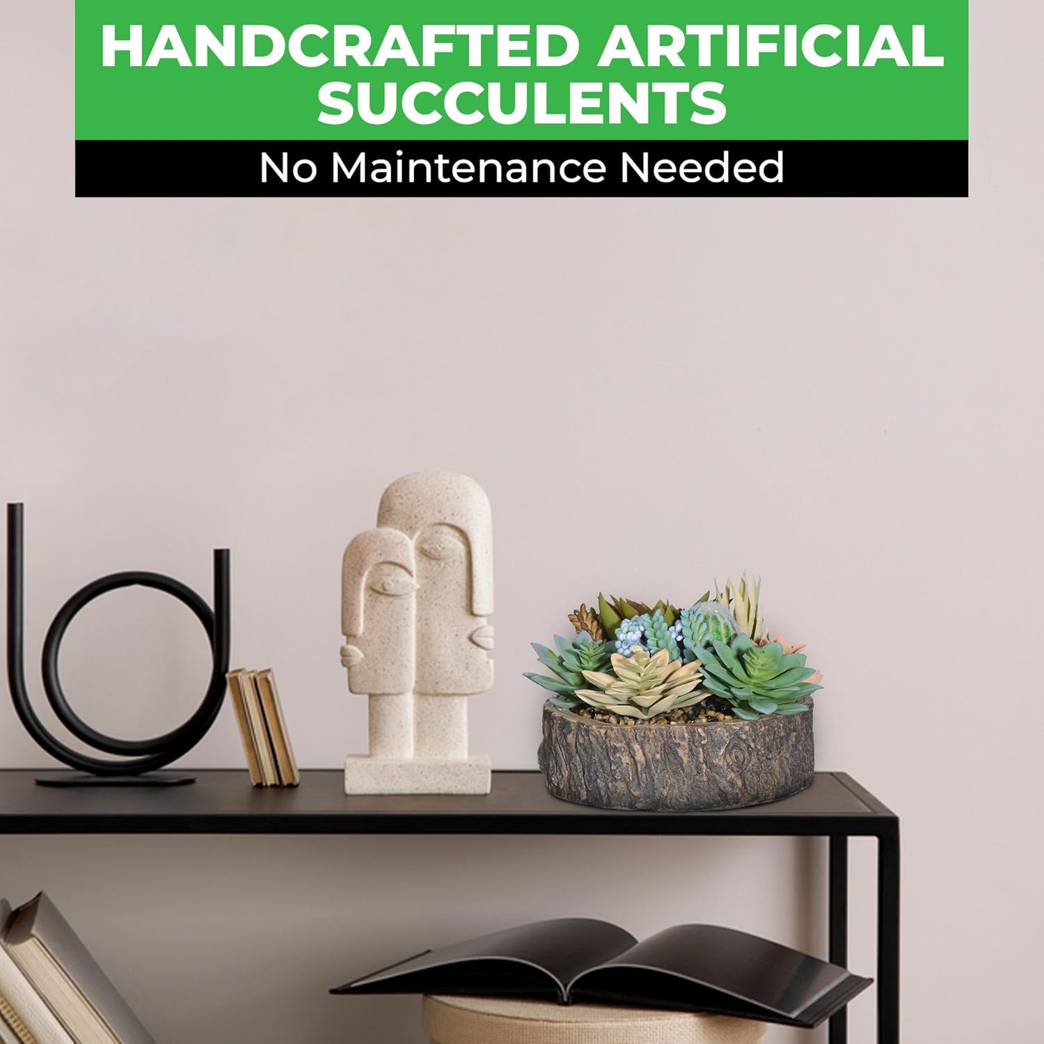 - [Note] Please note that slight variations in color or appearance may occur due to the handmade nature of the product. These succulents plants artificial require no maintenance—just set them up and enjoy their realistic beauty without worrying about watering or sunlight.