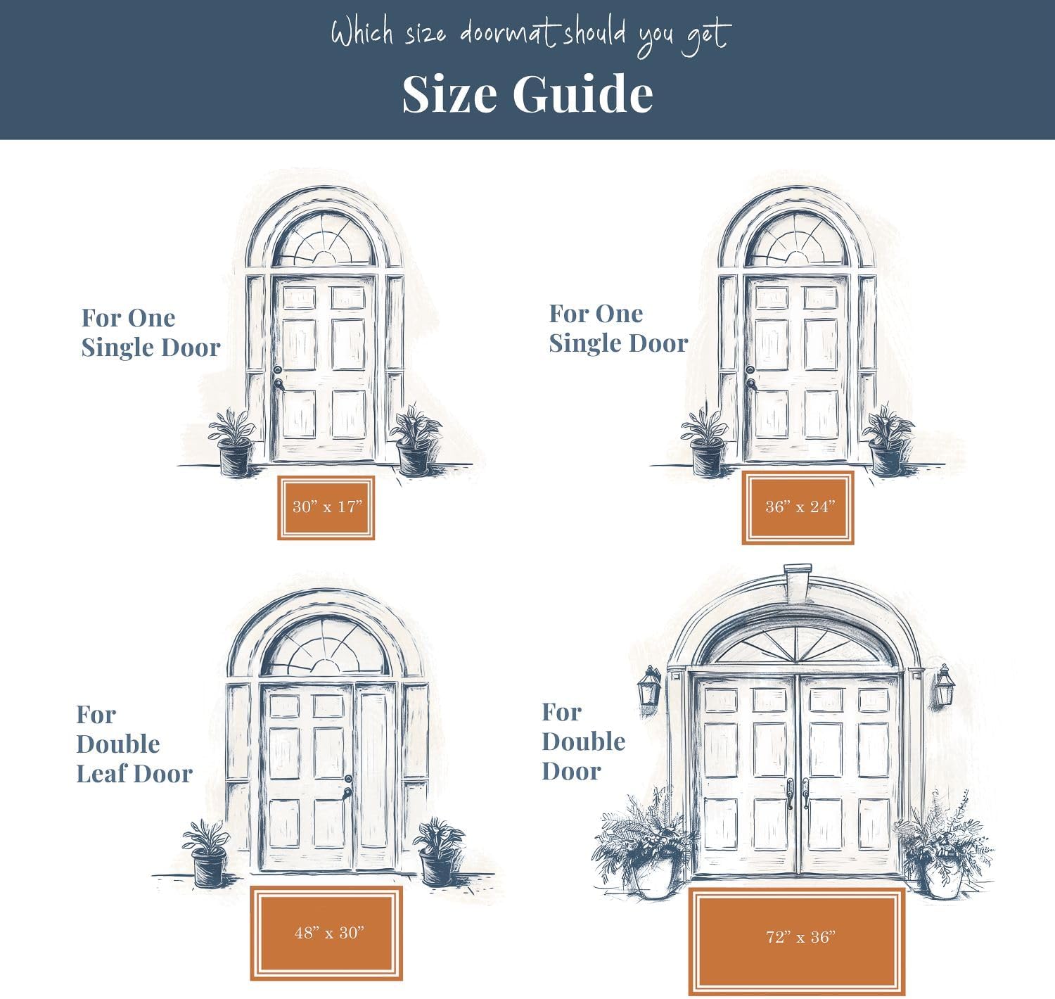- The Perfect Size - Measuring 48 x 30 inches, our welcome mat outdoor entrance rug is just the right size for any entryway. It’s big enough to accommodate two people standing side by side, yet small enough to fit in front of a single door without overwhelming the space. It’s the ideal front door mat outside entrance rug for any home or office.