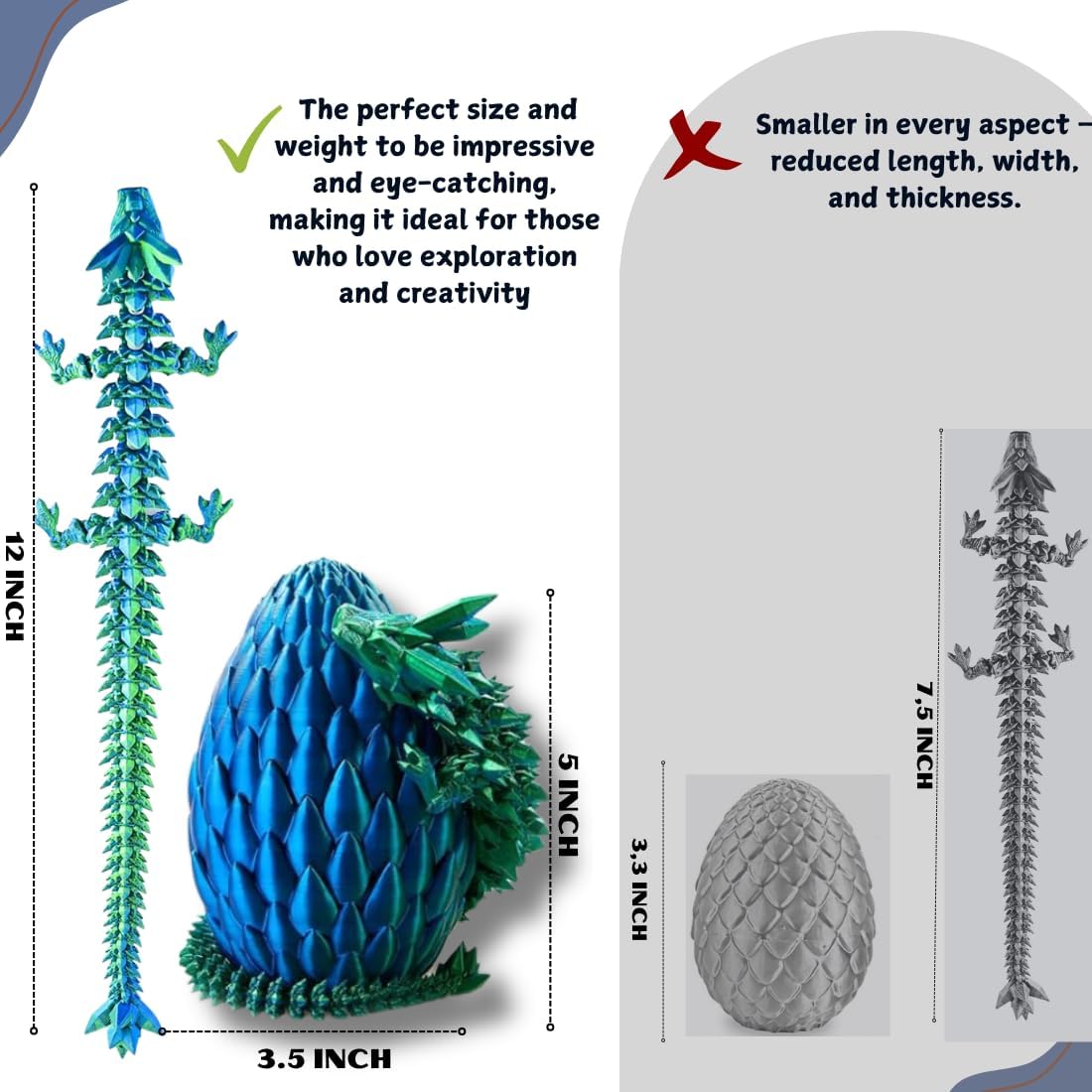- 【PERFECT SIZE】: The 5.1-inch egg holds a majestic 12-inch dragon inside. Its size fits perfectly in your hand, ideal for display and interactive play. Dragon printed under authorized commercial license. Licenced Reseller of ZDeanzo's 3D Designs: phuc nguyen