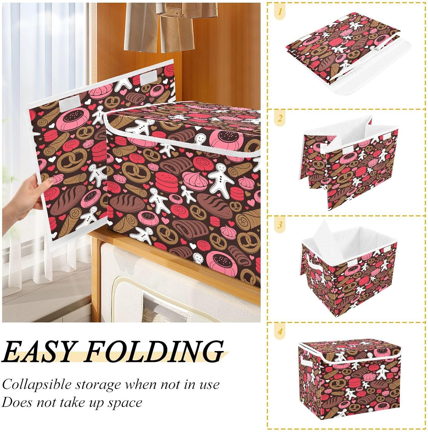 susiyo Holiday Candy Seamless fabric storage baskets with lids,Collapsible Storage Boxes,Foldable storage boxes with handles for Home,Office,Closet Organization