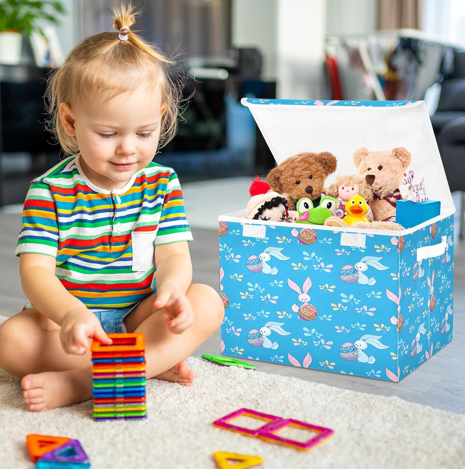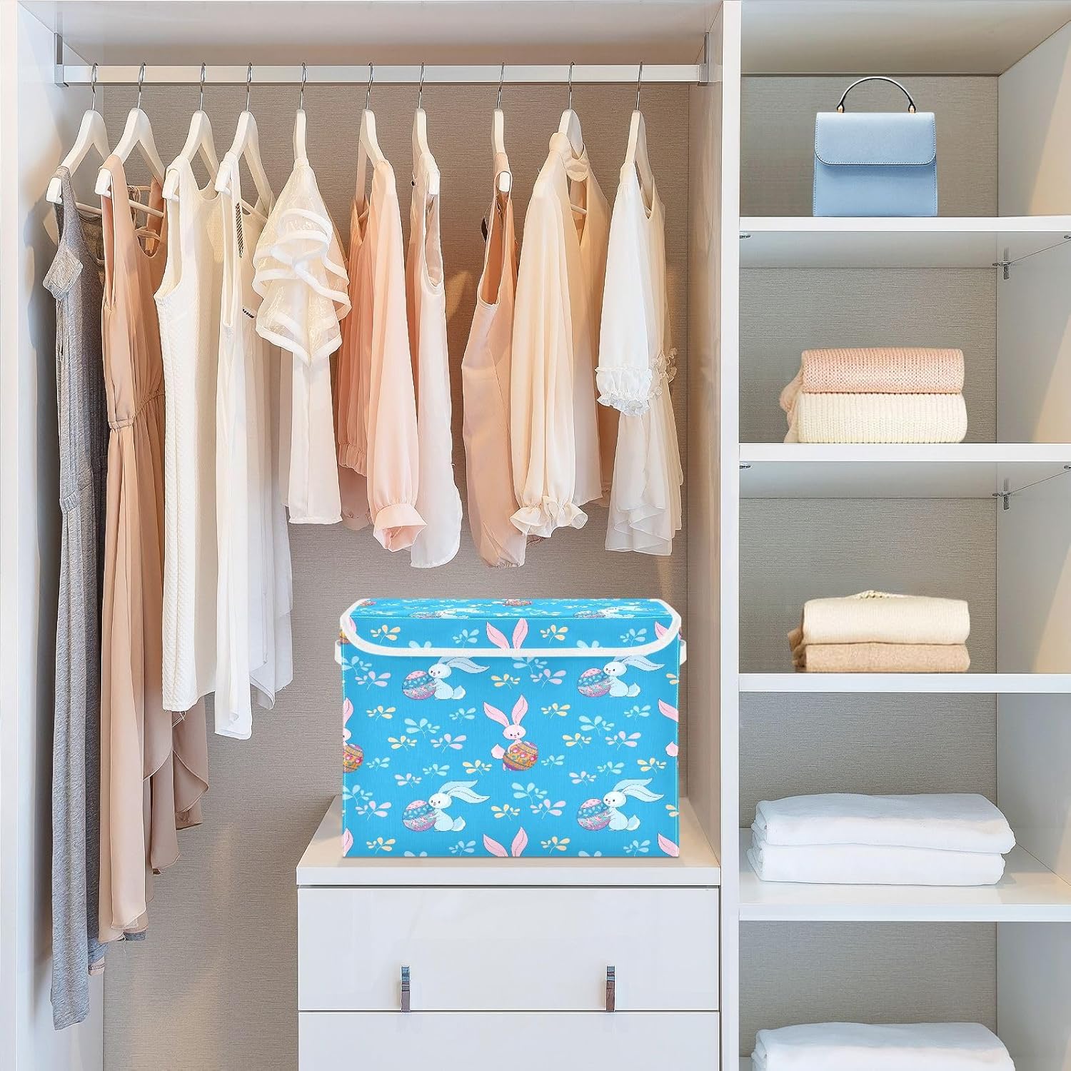 susiyo Blue Bunnies Colored Eggs fabric storage baskets with lids,Collapsible Storage Boxes,Foldable storage boxes with handles for Home,Office,Closet Organization