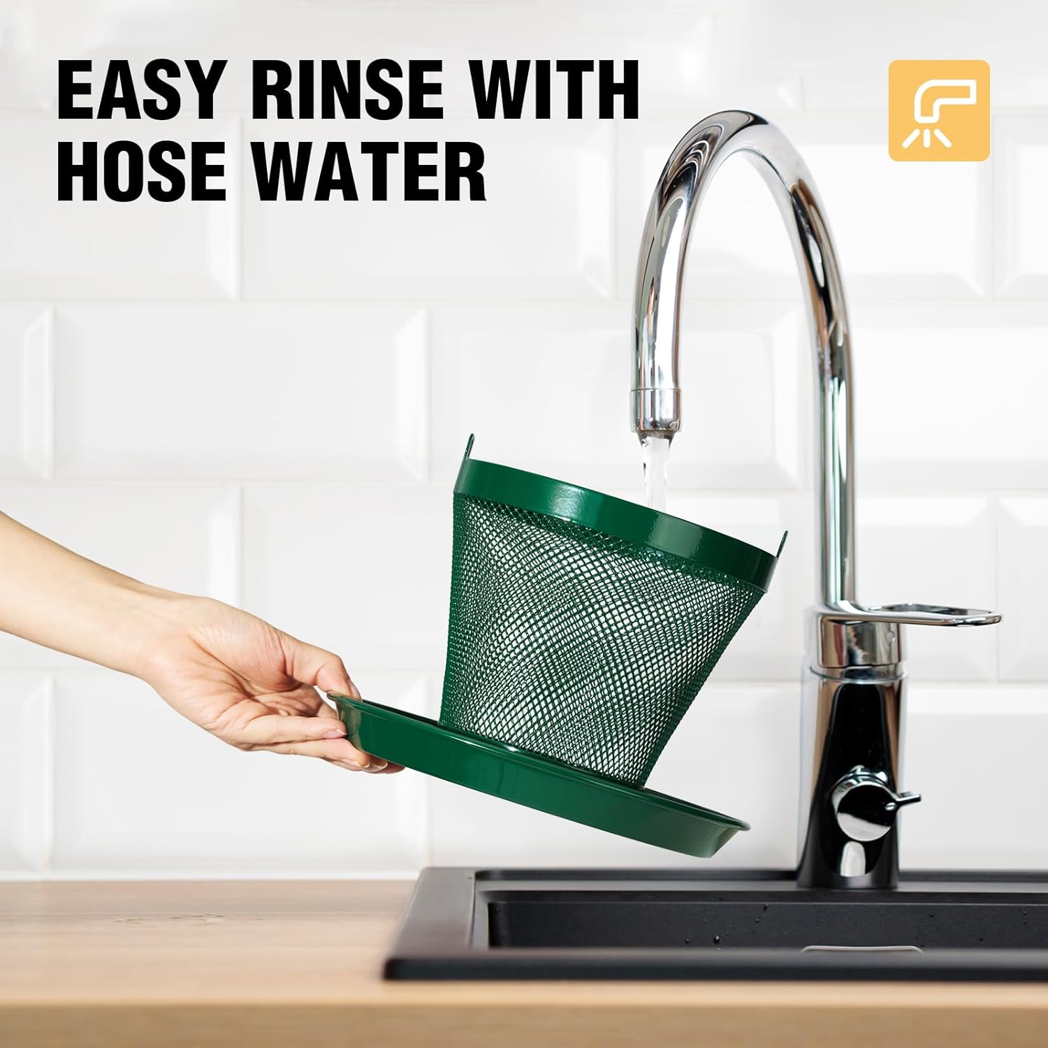 - Metal Mesh Chamber: The metal mesh seed chamber provides excellent ventilation, ensuring fresh seeds for your feathered friends. The durable and weather-resistant materials make it suitable for year-round use. Additionally, it allows you to easily monitor seed levels