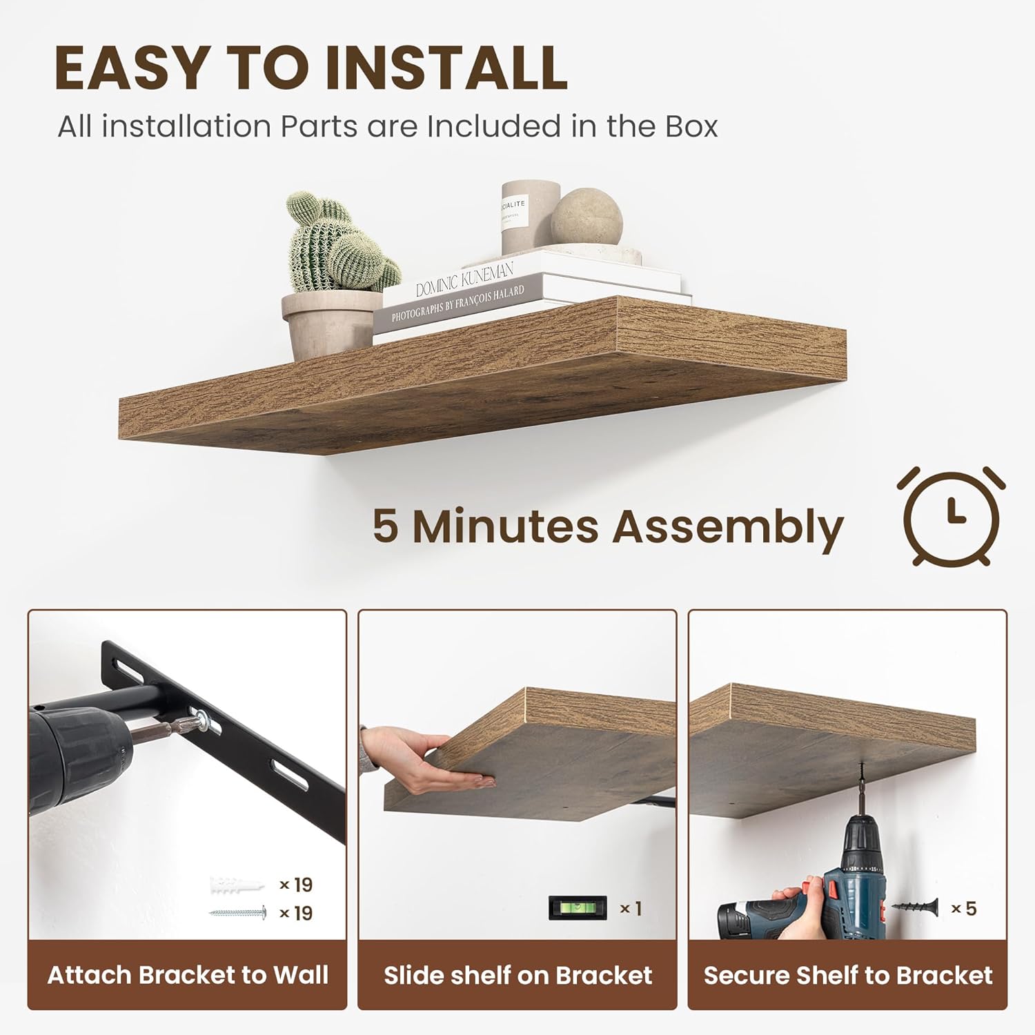 - 【Easy Installation】Designed with user convenience in mind, these shelves come with all necessary mounting hardware and clear instructions. You can have them up and ready to use in less than 5 minutes. Plus, our customer service is always ready to assist with any queries or concerns, ensuring a hassle-free experience