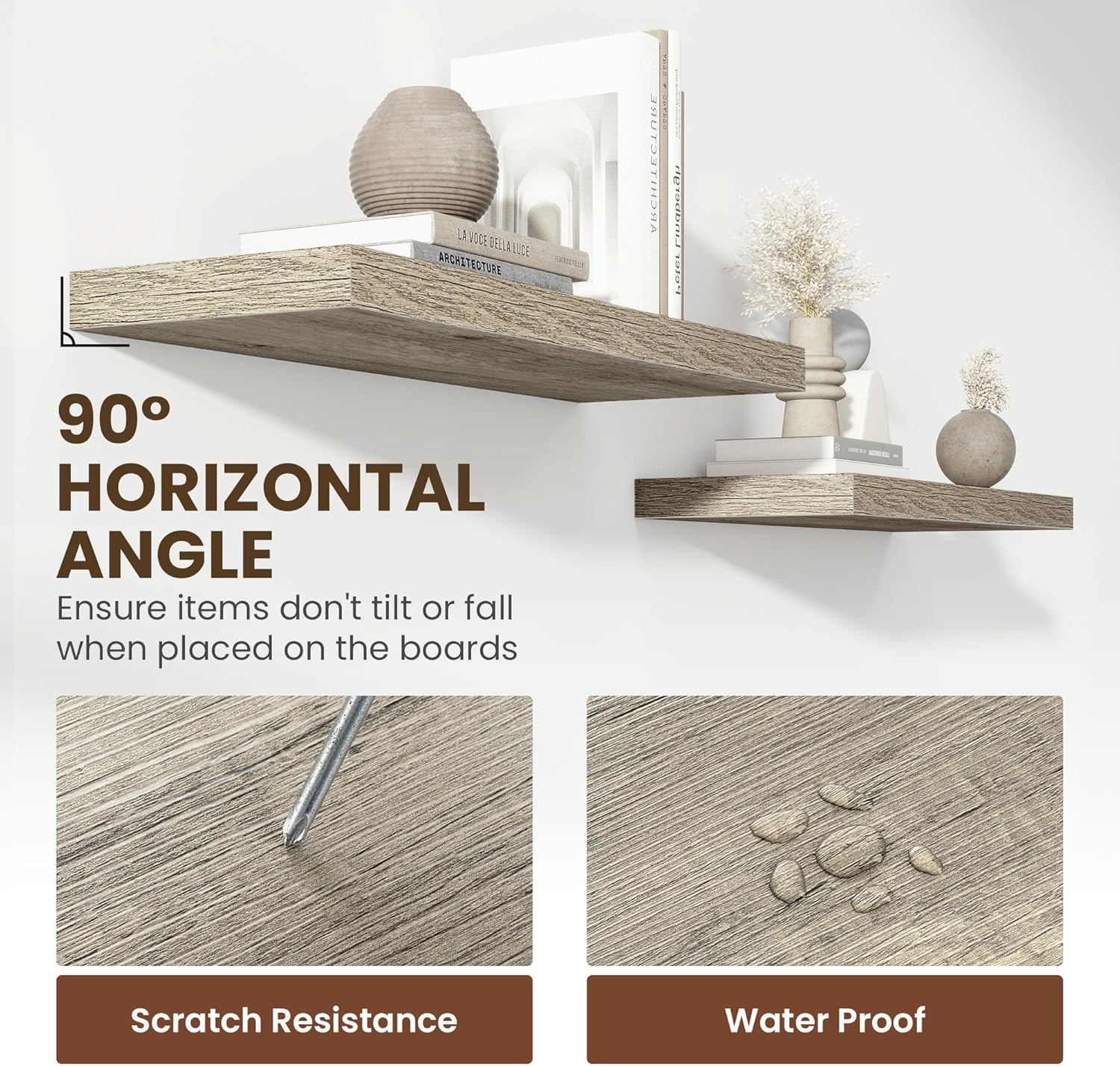 - 【Premium Quality Construction】Crafted from high-grade engineered wood with an invisible one-piece bracket, these floating shelves offer a robust and sleek design. The rustic wooden grain finish not only adds a touch of elegance but also infuses warmth into any room, making them a perfect fit for both modern and traditional interiors.